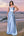 Himmelsblå A Line Chiffong Plisserad Volangärm Golvlång Klänning med slits
