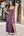 Lila Blomma Tryckt En Linje Utskuren Bröllop Gäst Klänning Med Slits