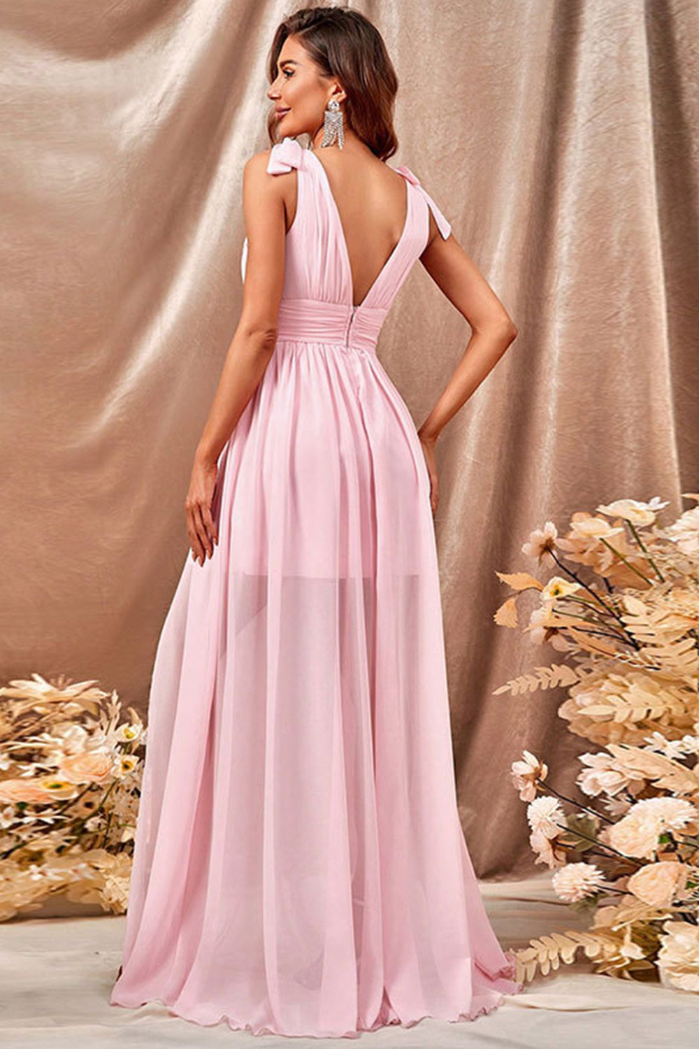 A-linje Rosa Balklänning med Slits