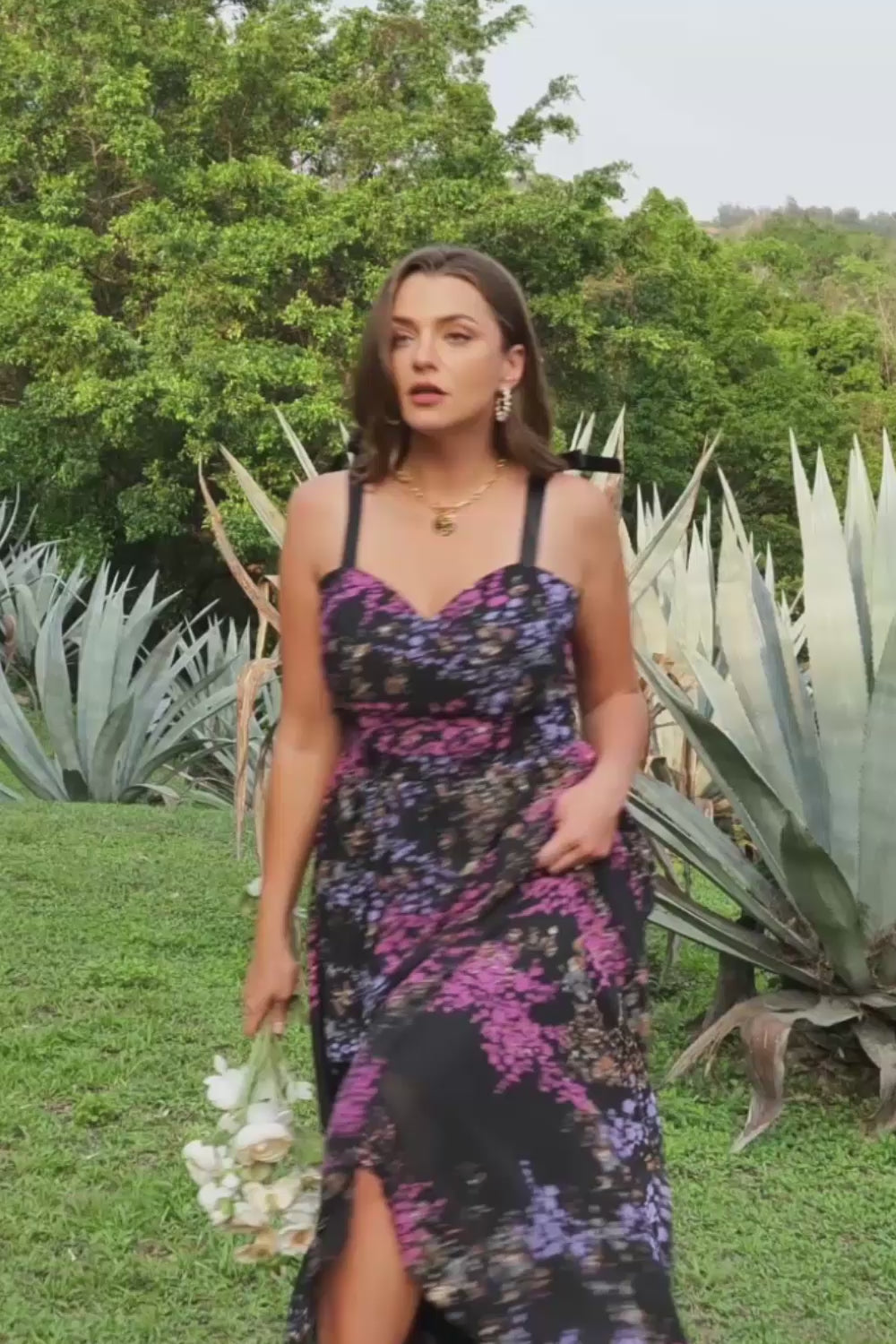En linje spagetti remmar svart blandad blomma plus storlek balklänning