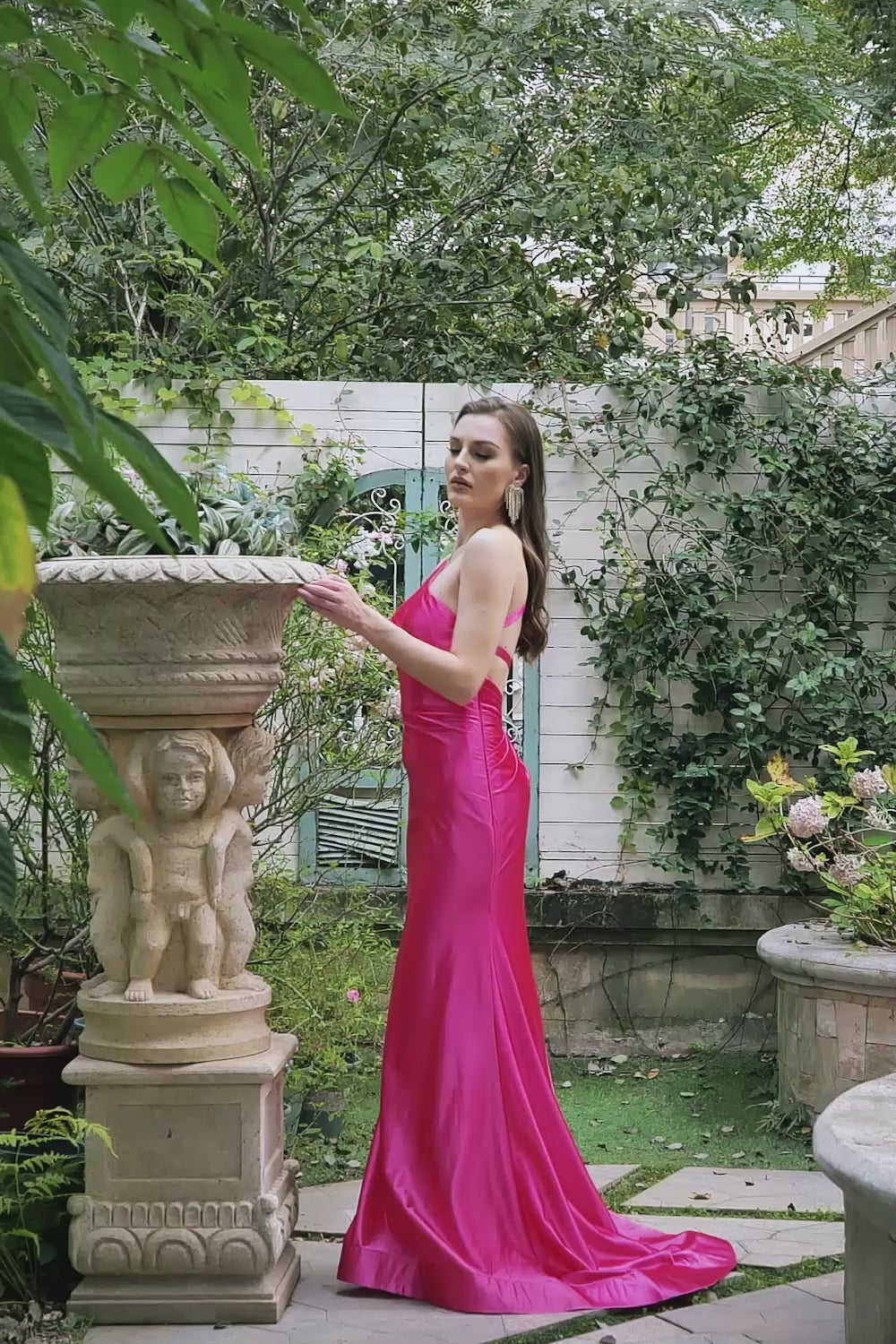 Fuchsia Enaxlad Sjöjungfru Balklänning