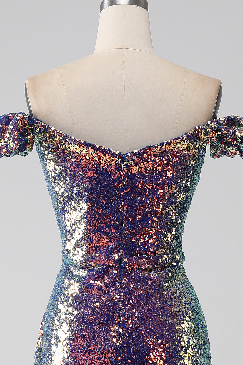 Glittrande sjöjungfru utanför axeln lila balklänning med slits