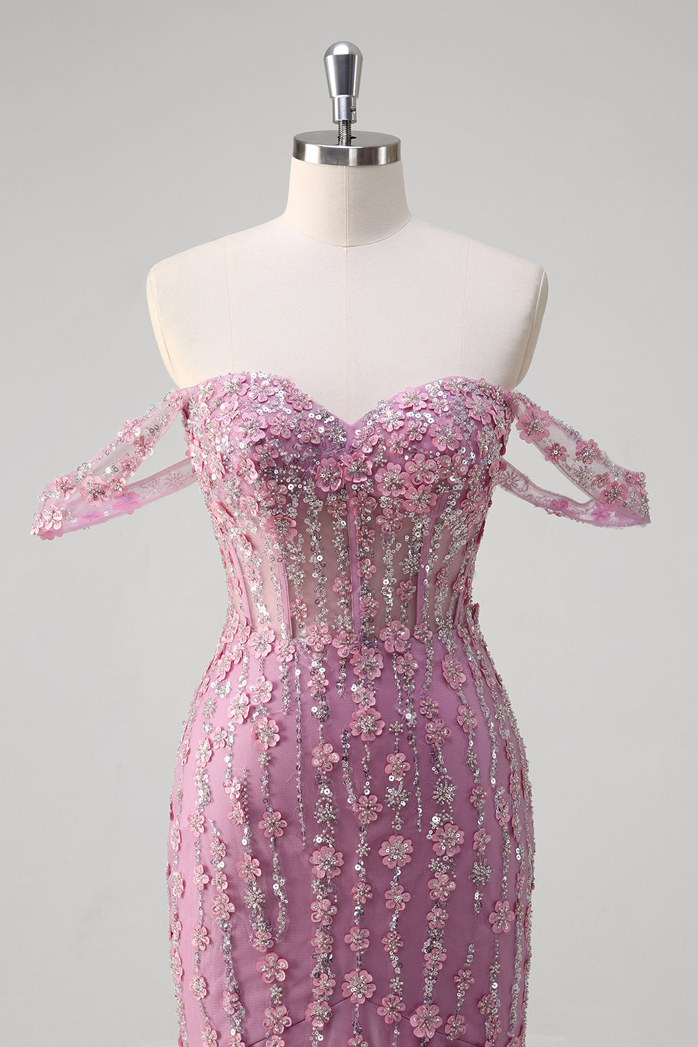 Grå lila sjöjungfru från axeln applicerad korsett lång balklänning med tyll