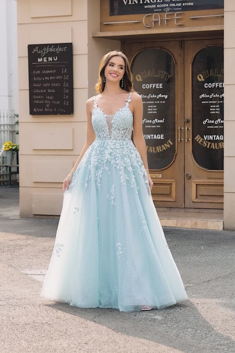Mint Balklänning Avtagbara ärmar Pärlstav Balklänningar med applikationer