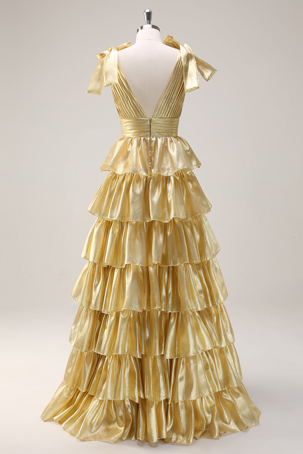 Prinsessa A-linje V-ringad Fuchsia Balklänning med slits