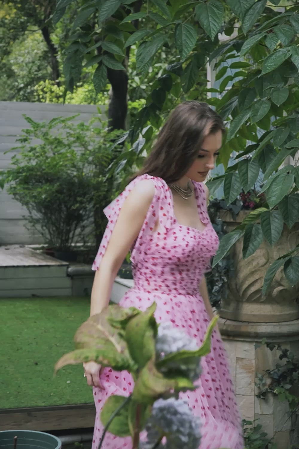 Rosa Tyll A-linje Midi Balklänning Med Hjärtan