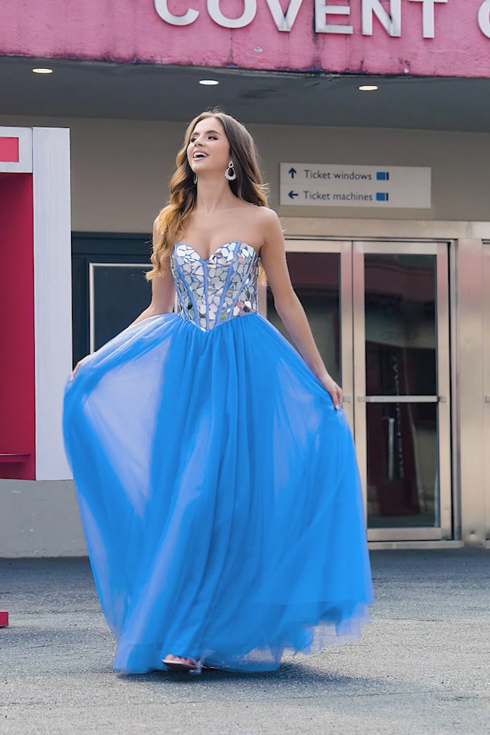 Royal Blue A-linje Älskling Trasiga Speglar Axelbandslös korsett Lång Balklänning