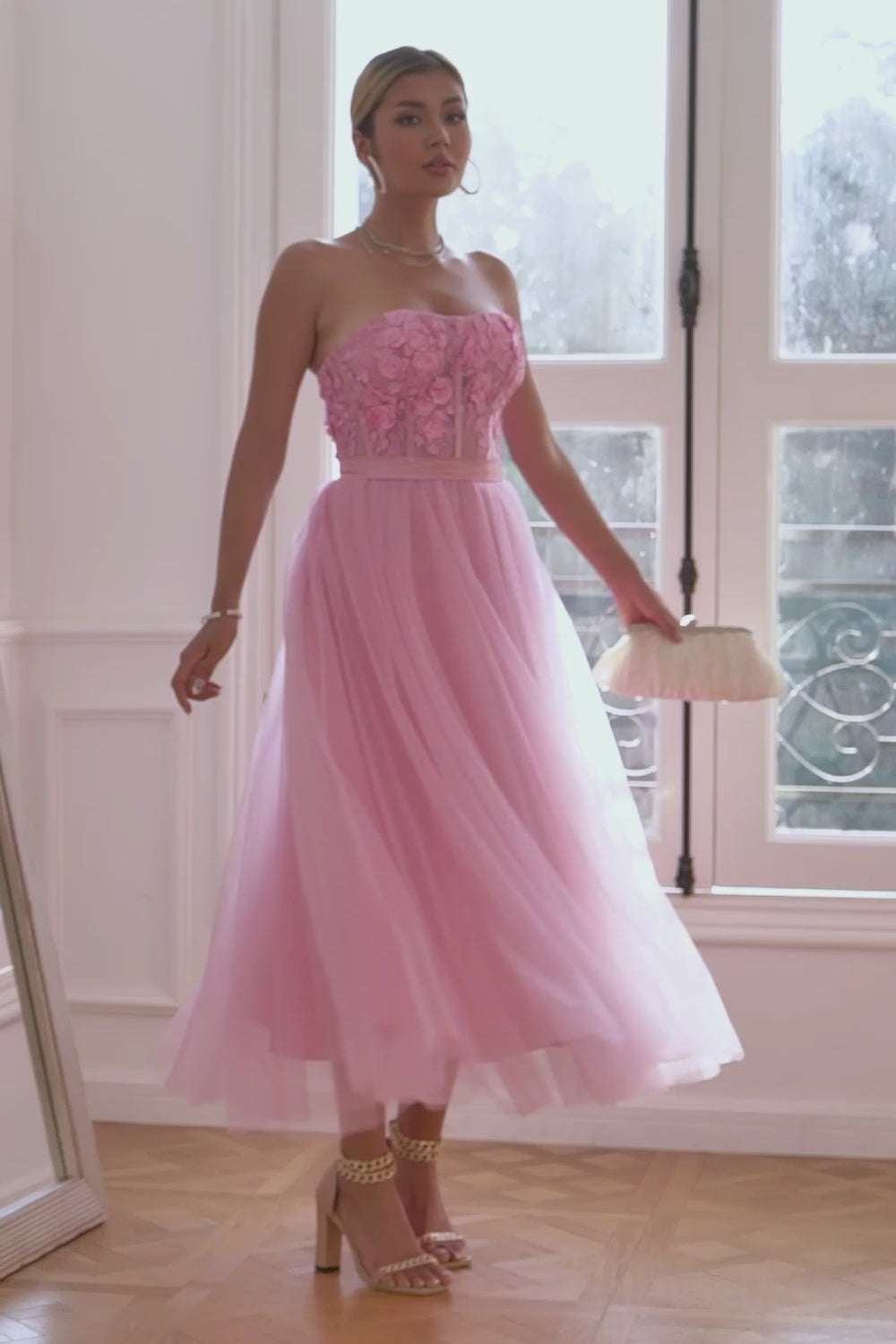 Underbar A-linje Axelbandslös rosa Balklänning med Applikationer