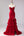 Röd sjöjungfru Sweetheart pärlkorsett med volang lång balklänning med slits