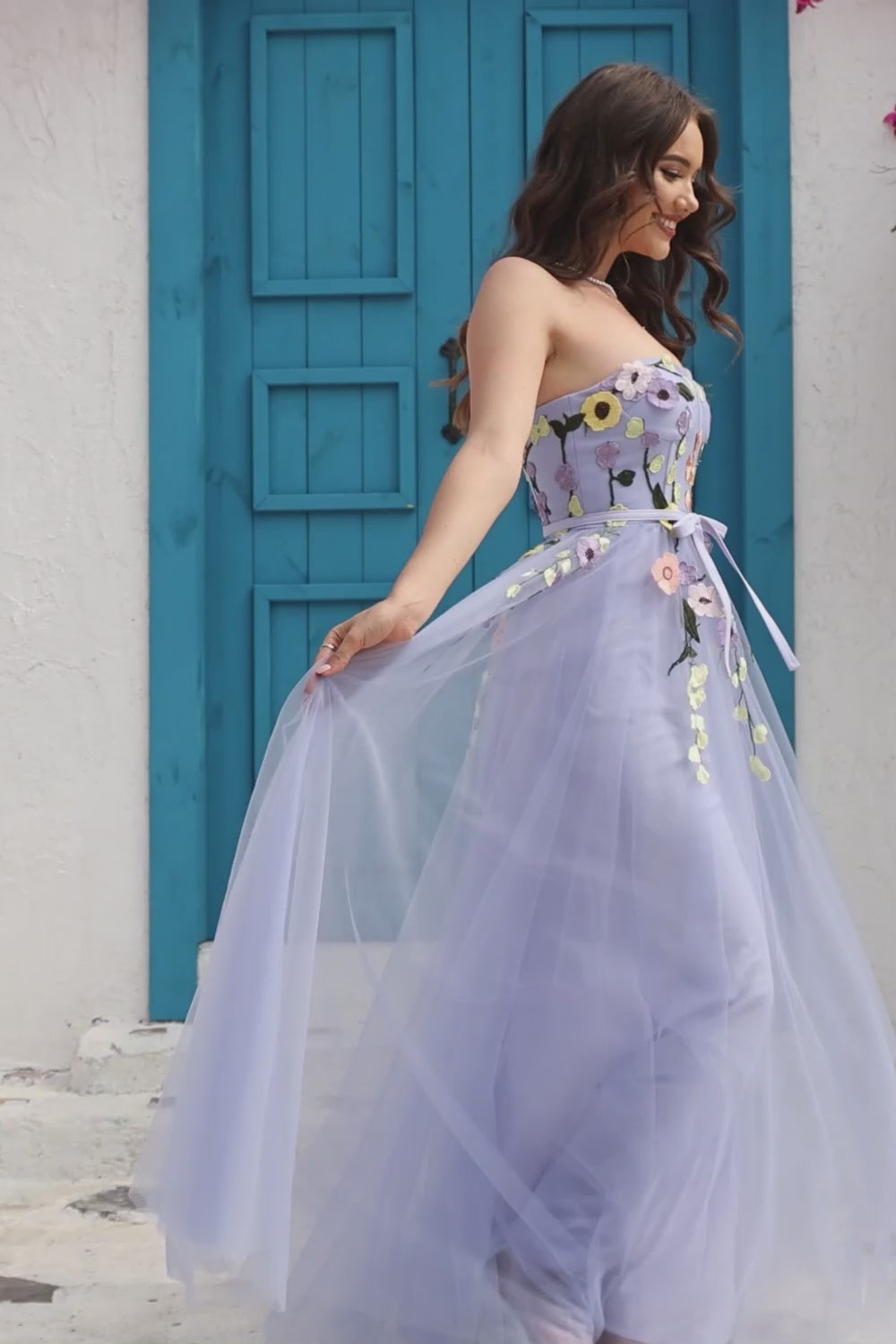 Lavendel Tyll En Linje Älskling Balklänning med Applikationer