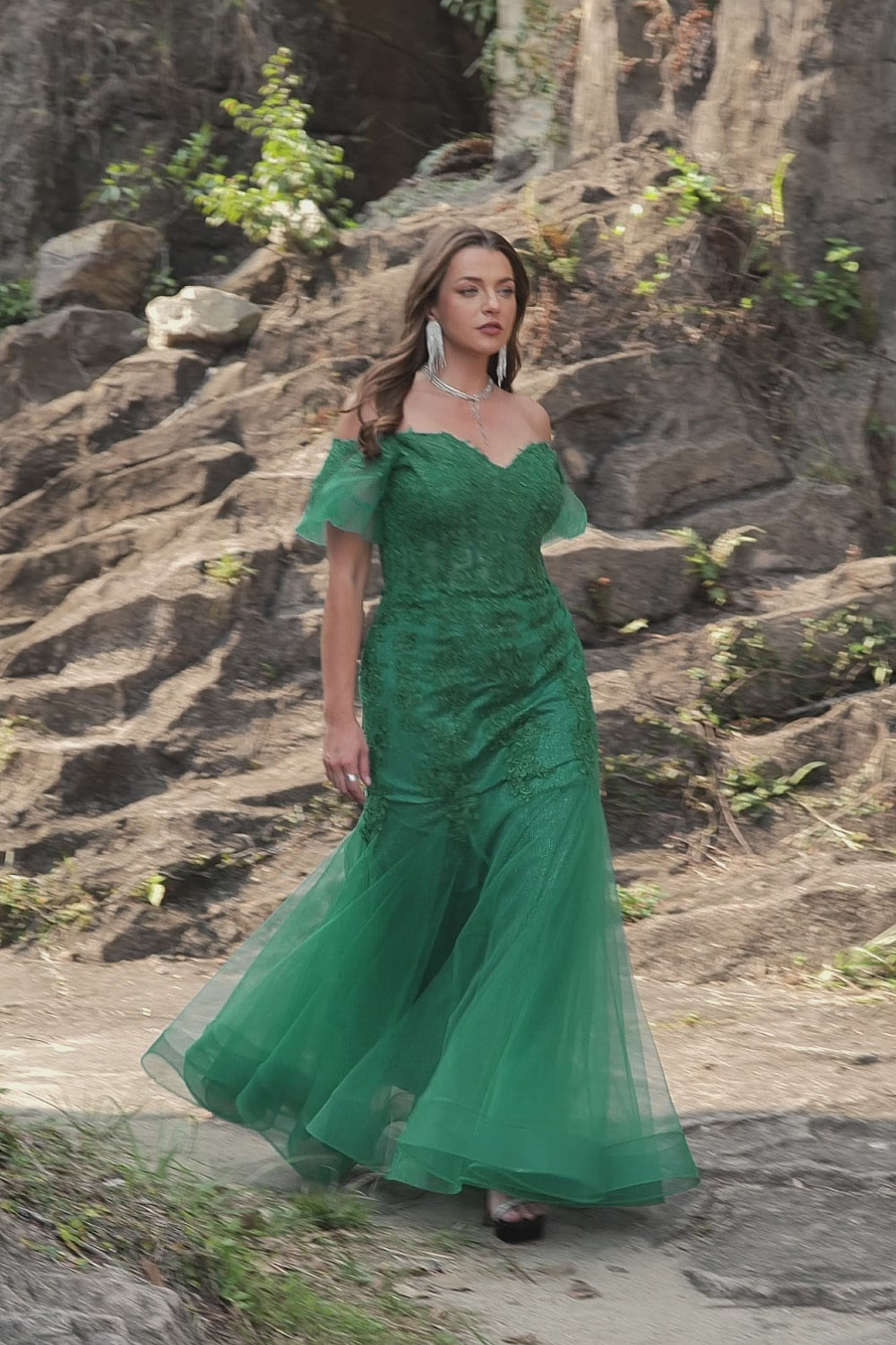 Sjöjungfru av axeln mörkgrön plus size balklänning med Applikationer