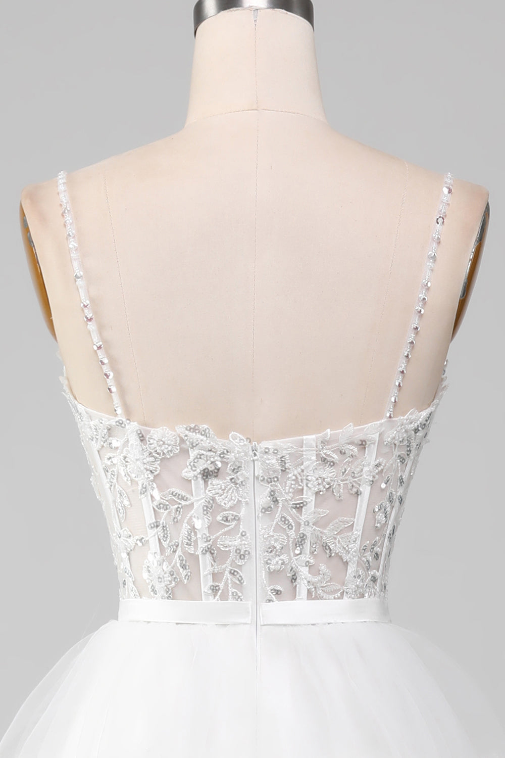 Vit A-linje glittrande paljetter volang kjol korsett balklänning med slits