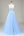 En linje djup V hals ljusblå lång balklänning med applikationer