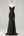 Svart sjöjungfruaxelbandslös korsett med applikation och lång balklänning med slits