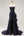 Marinblå Älskling En linje veckad balklänning med volang skärp