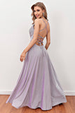 Lilac V-ringning Lång Balklänning med korsremmar