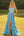 Blå A-linje korsett broderad med spets bak lång blommig balklänning med slits