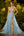 Glittrande ljusblå lång balklänning med pärlpärlstil och paljetter
