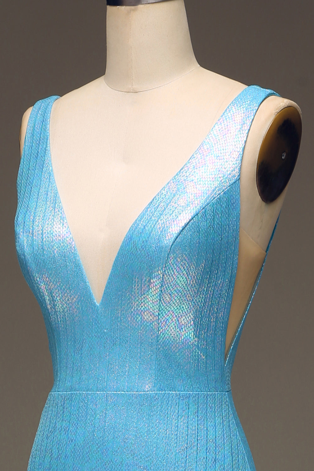 Glitter Blå V-ringad Mermaid Balklänning