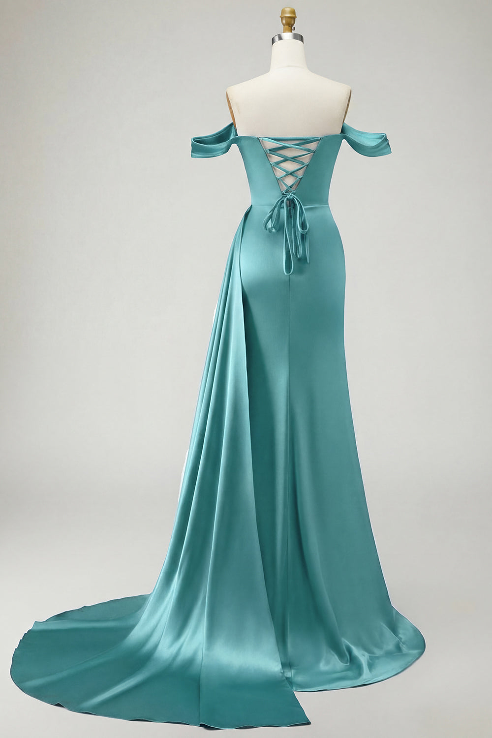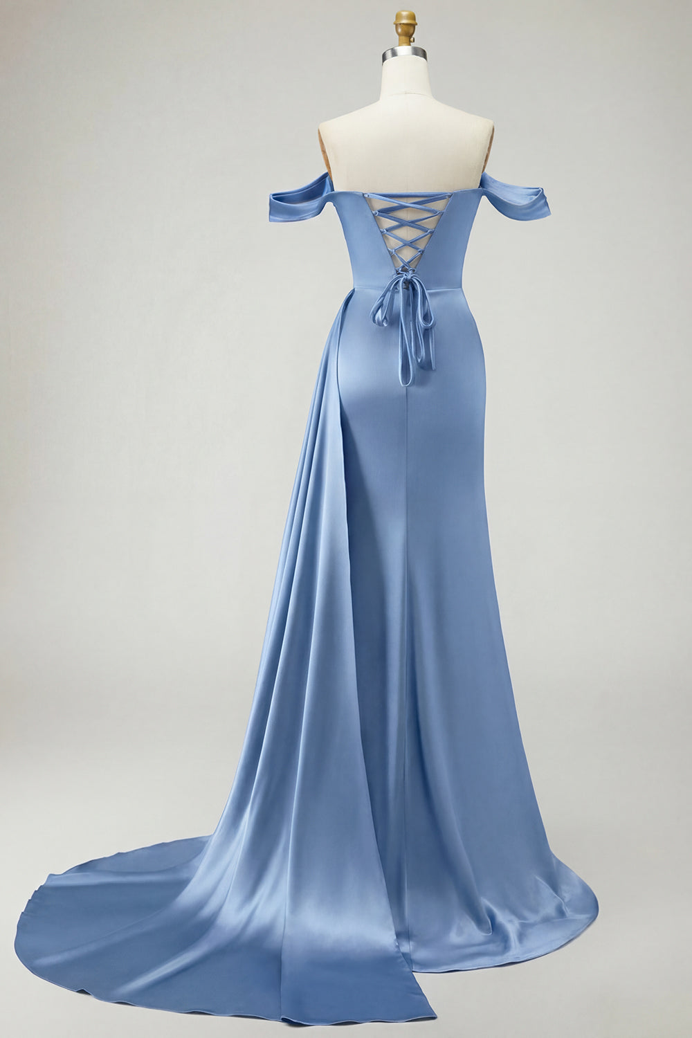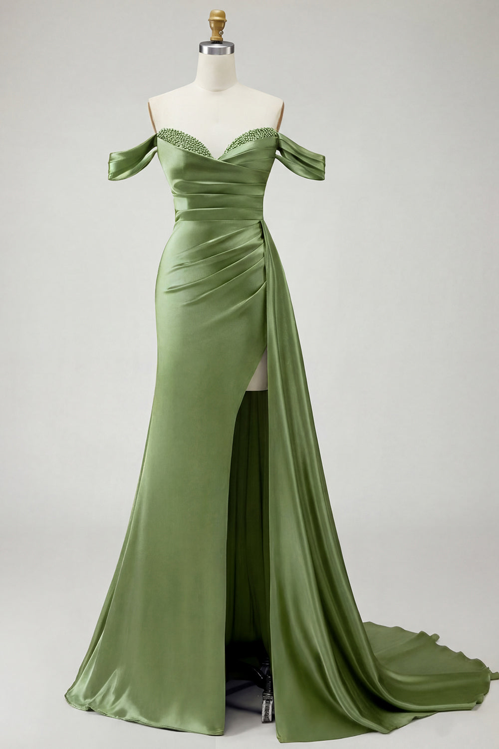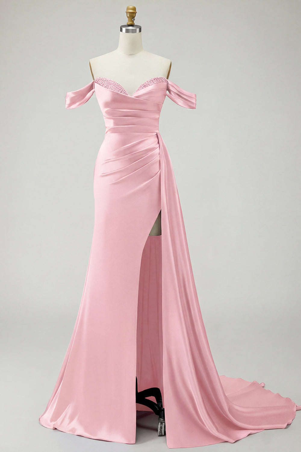 Kungligt blå axelbandslös sjöjungfruklänning med pärlpärlprydd satin lång balklänning med slits