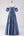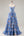 Blå A-linje korsett broderad med spets bak lång blommig balklänning med slits