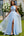 Ljusblå blommig A-linje med snöre i korsett längst balklänning med slits