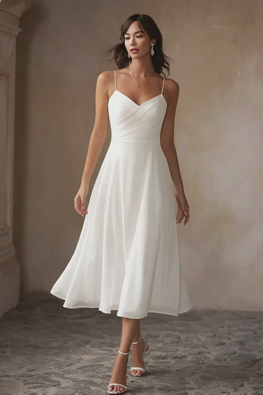 Vit A Line Chiffong Spaghetti Remmar Midi Bröllopsklänning