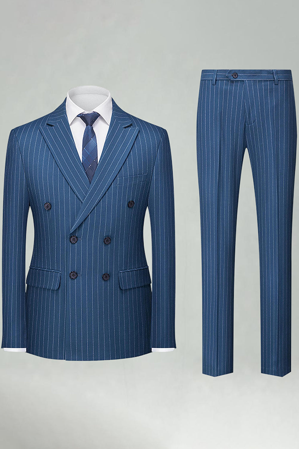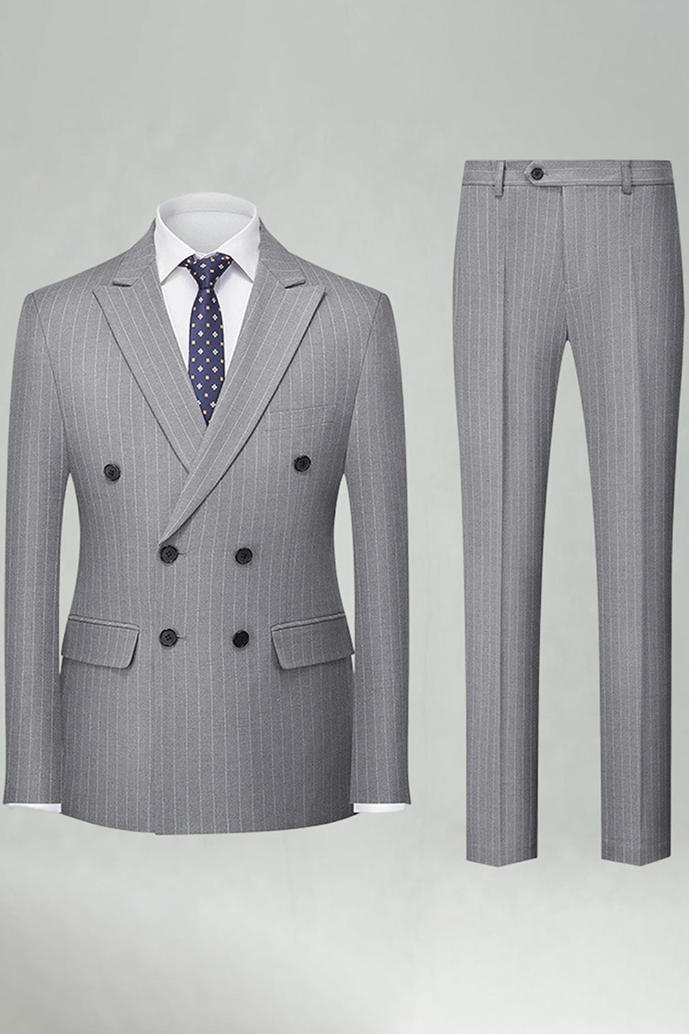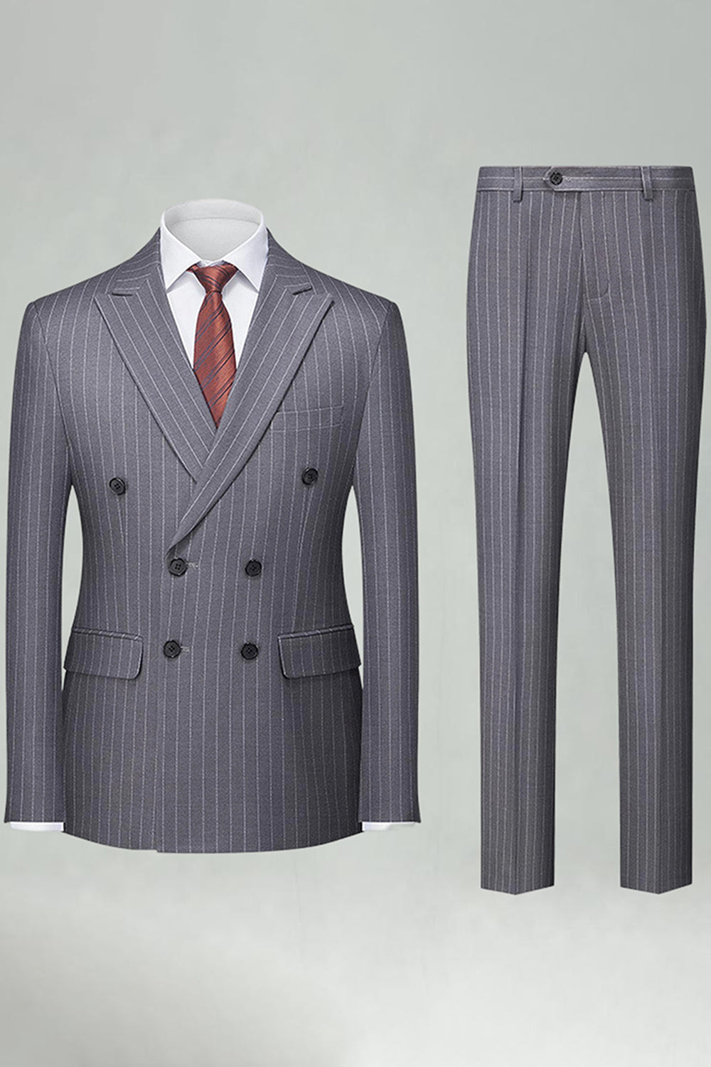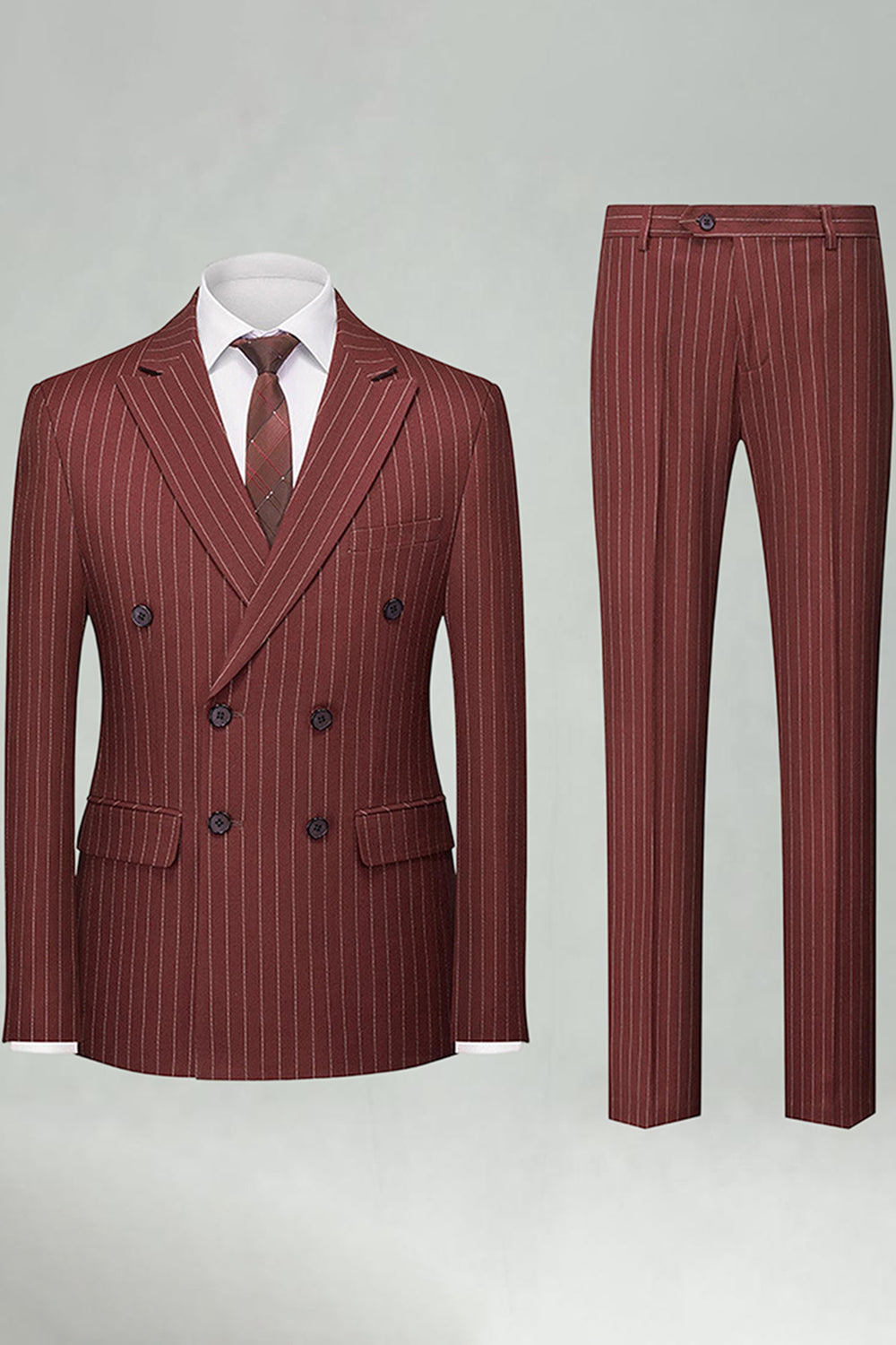 2-delade randiga dubbelknäppta khakikostymer för herrar