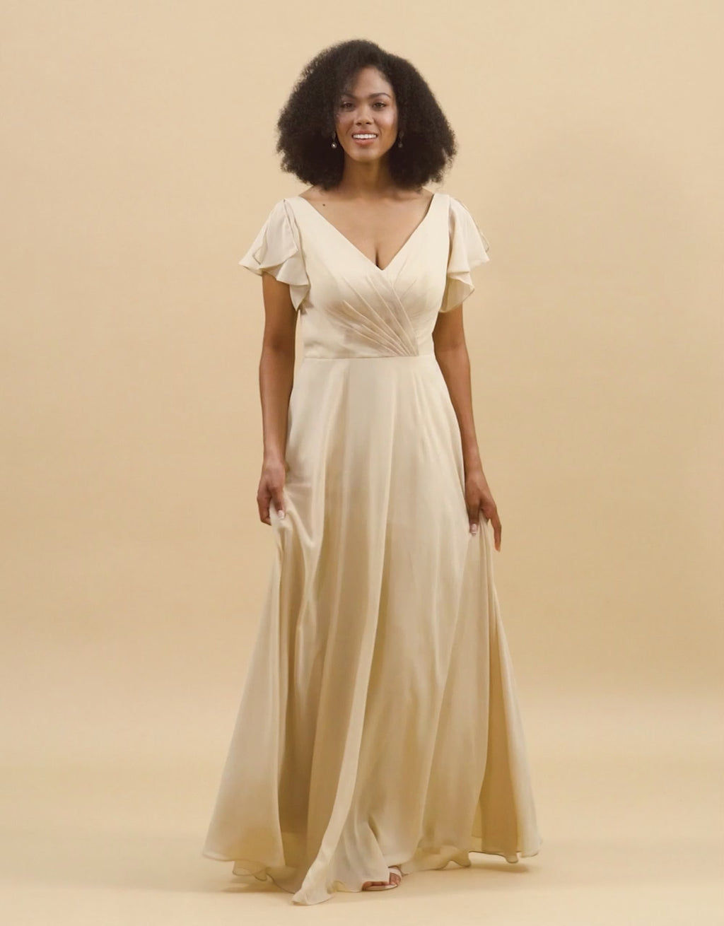 Champagne Kepsärmar Lång Chiffong Brudtärneklänning