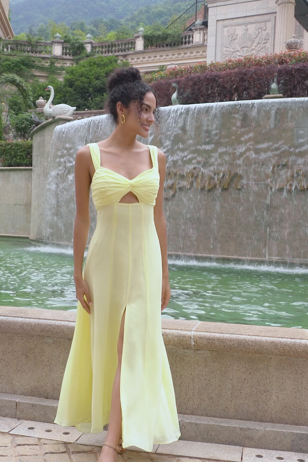 Citrongul A Line Nyckelhål Lång Brudtärneklänning med slits