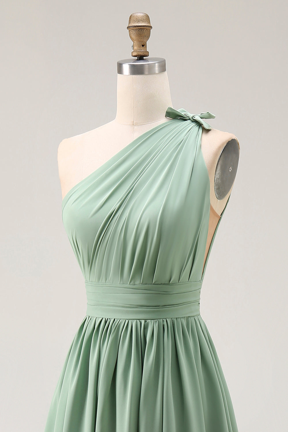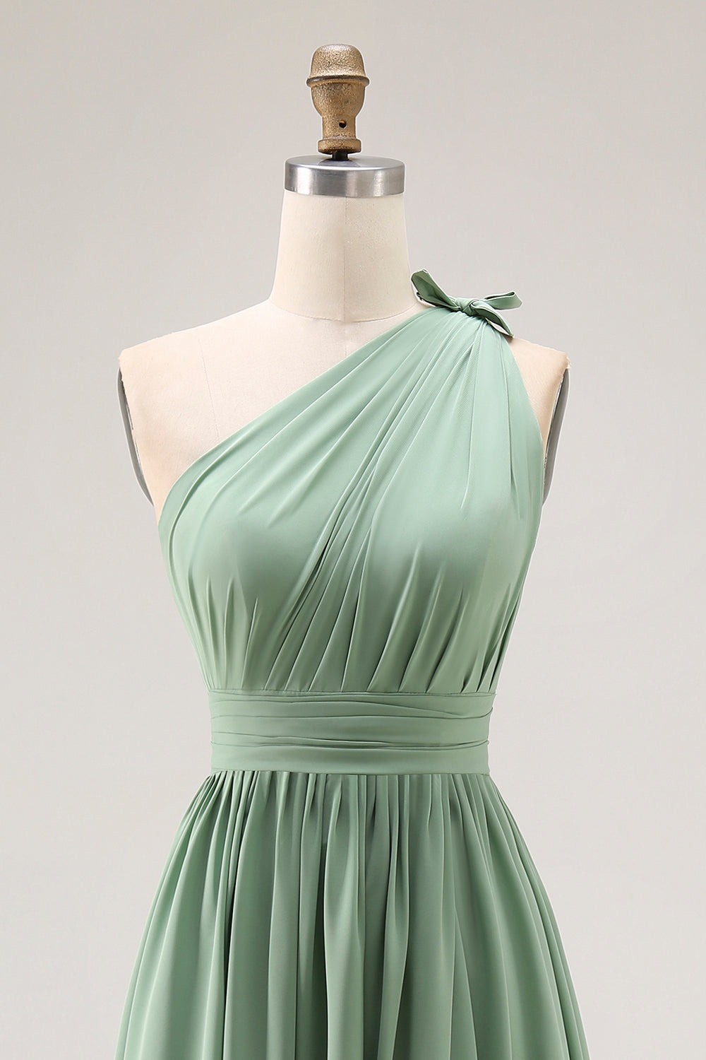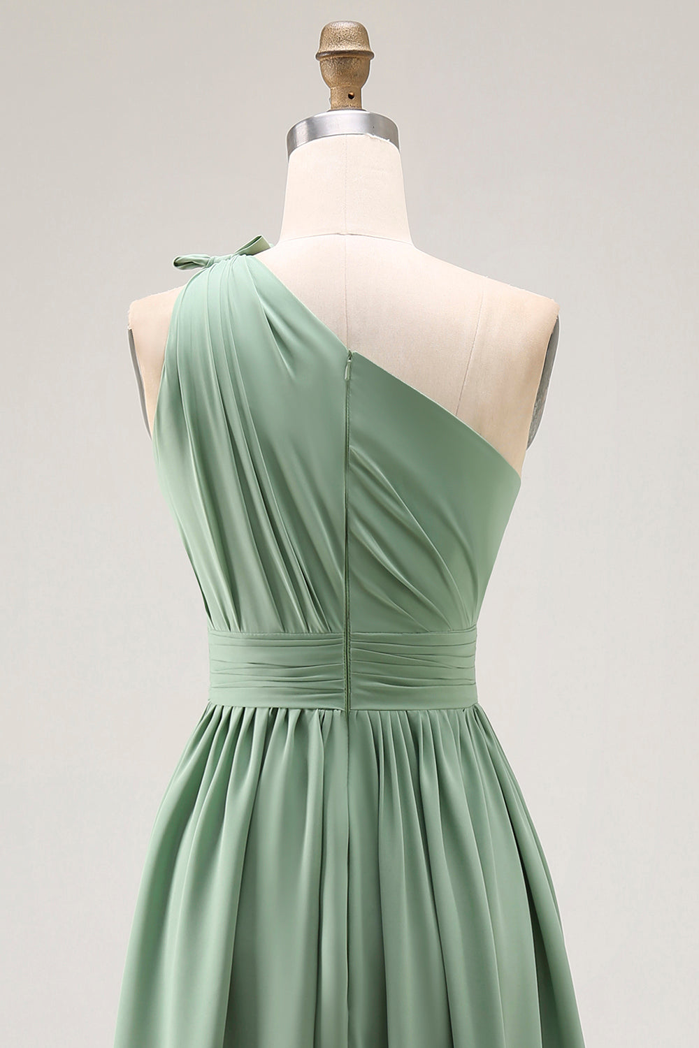 Grön En Linje En Axel Rynkad Brudtärna Klänning Med Slits