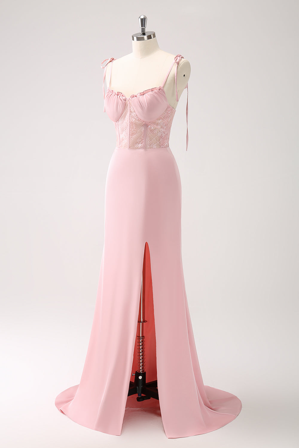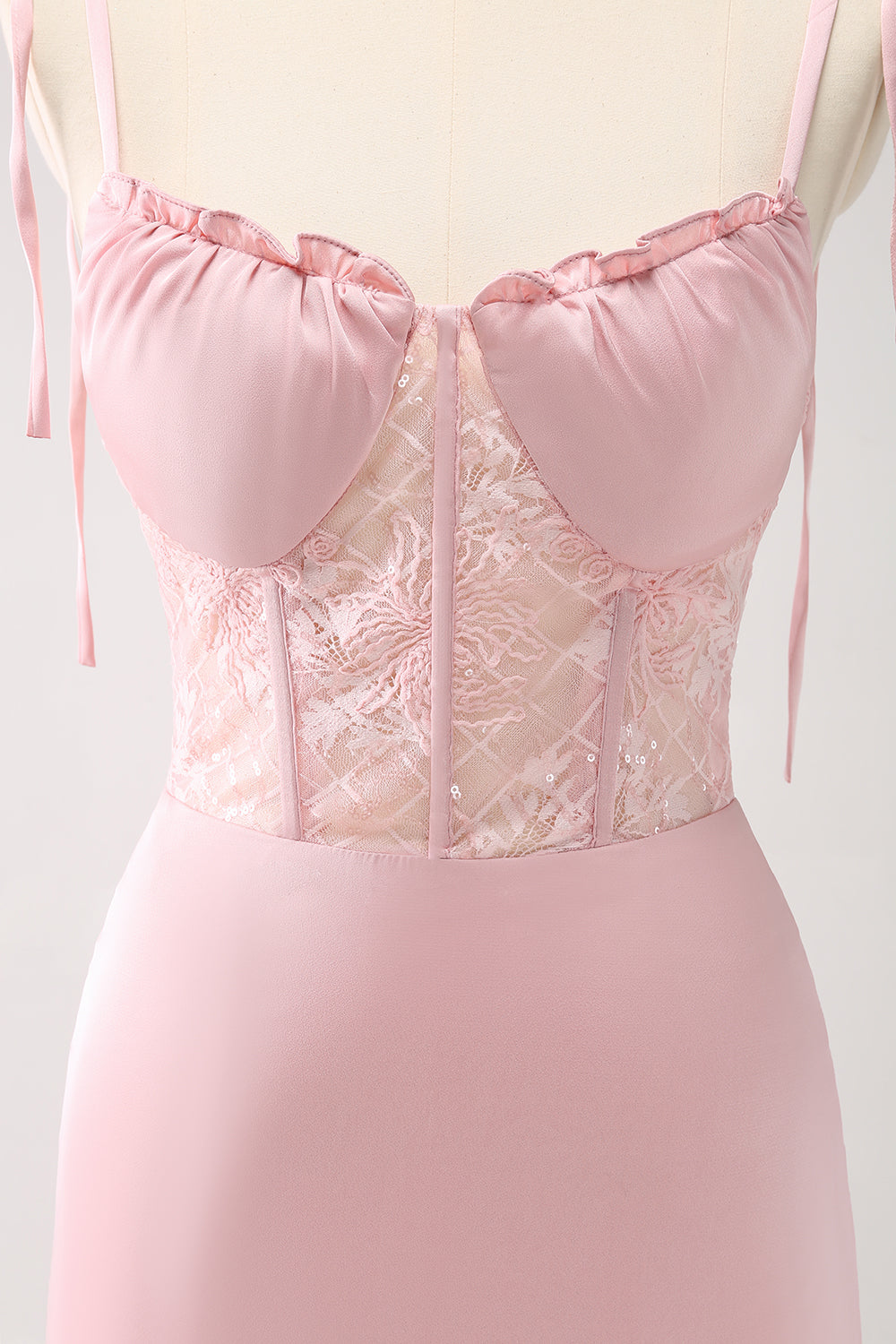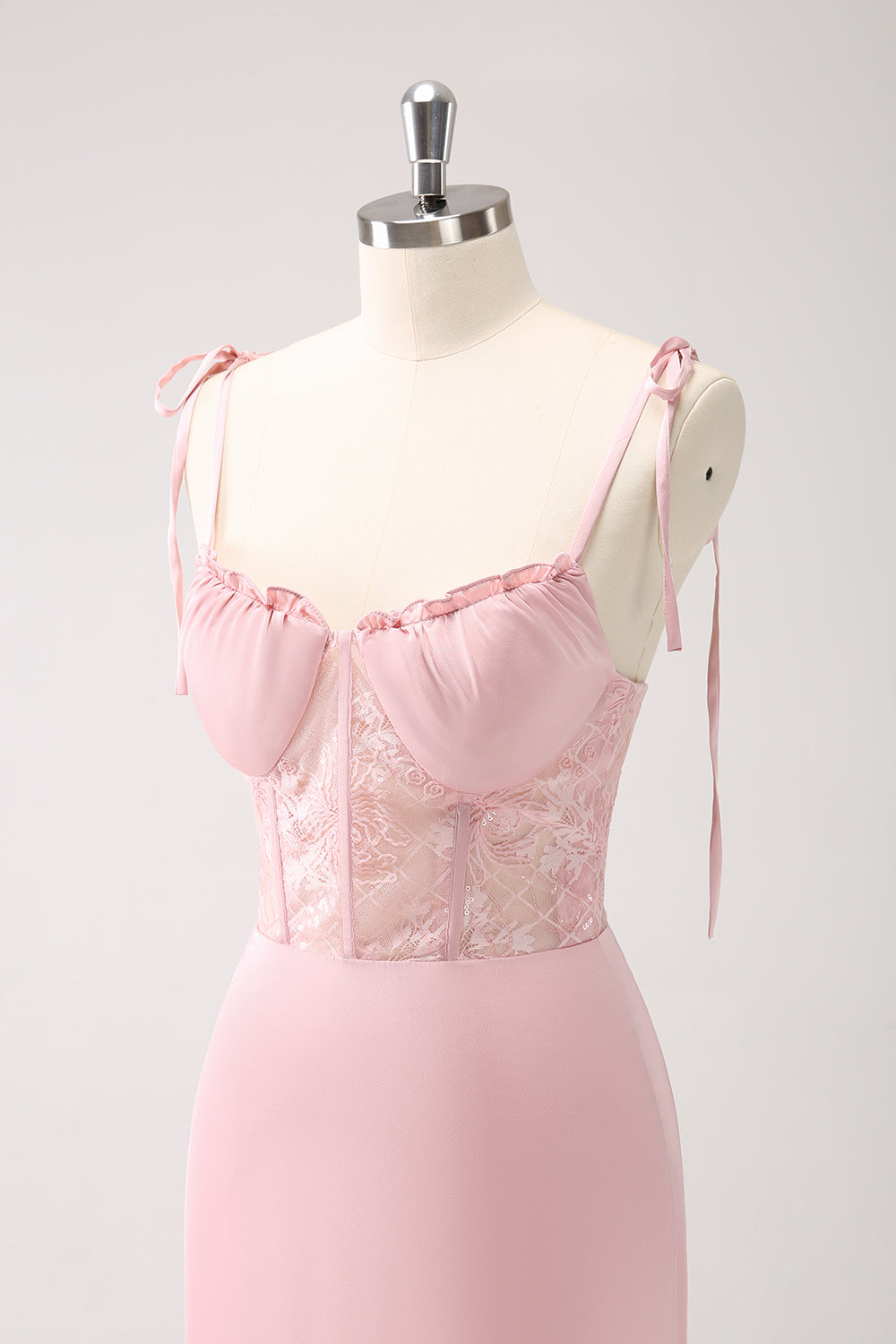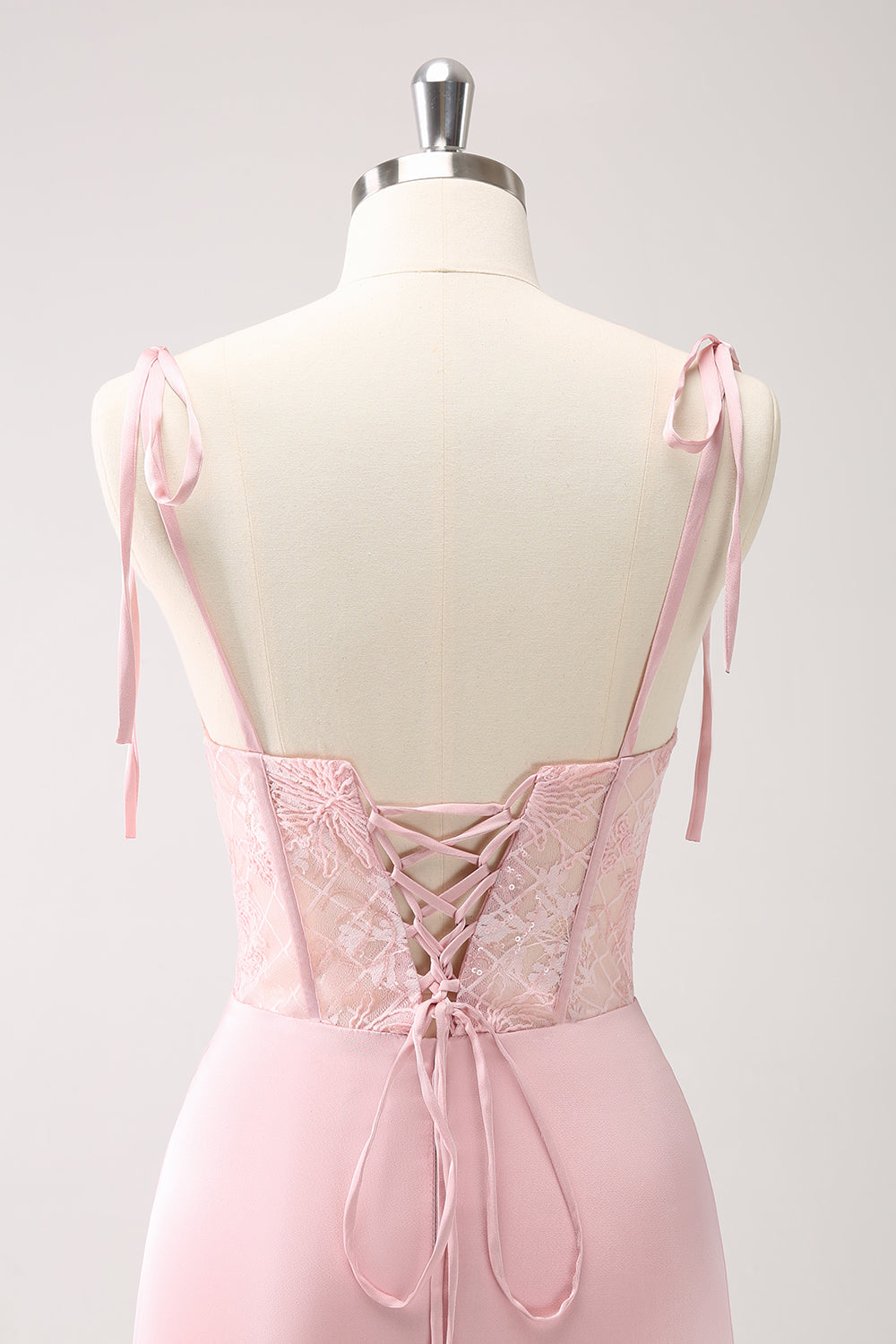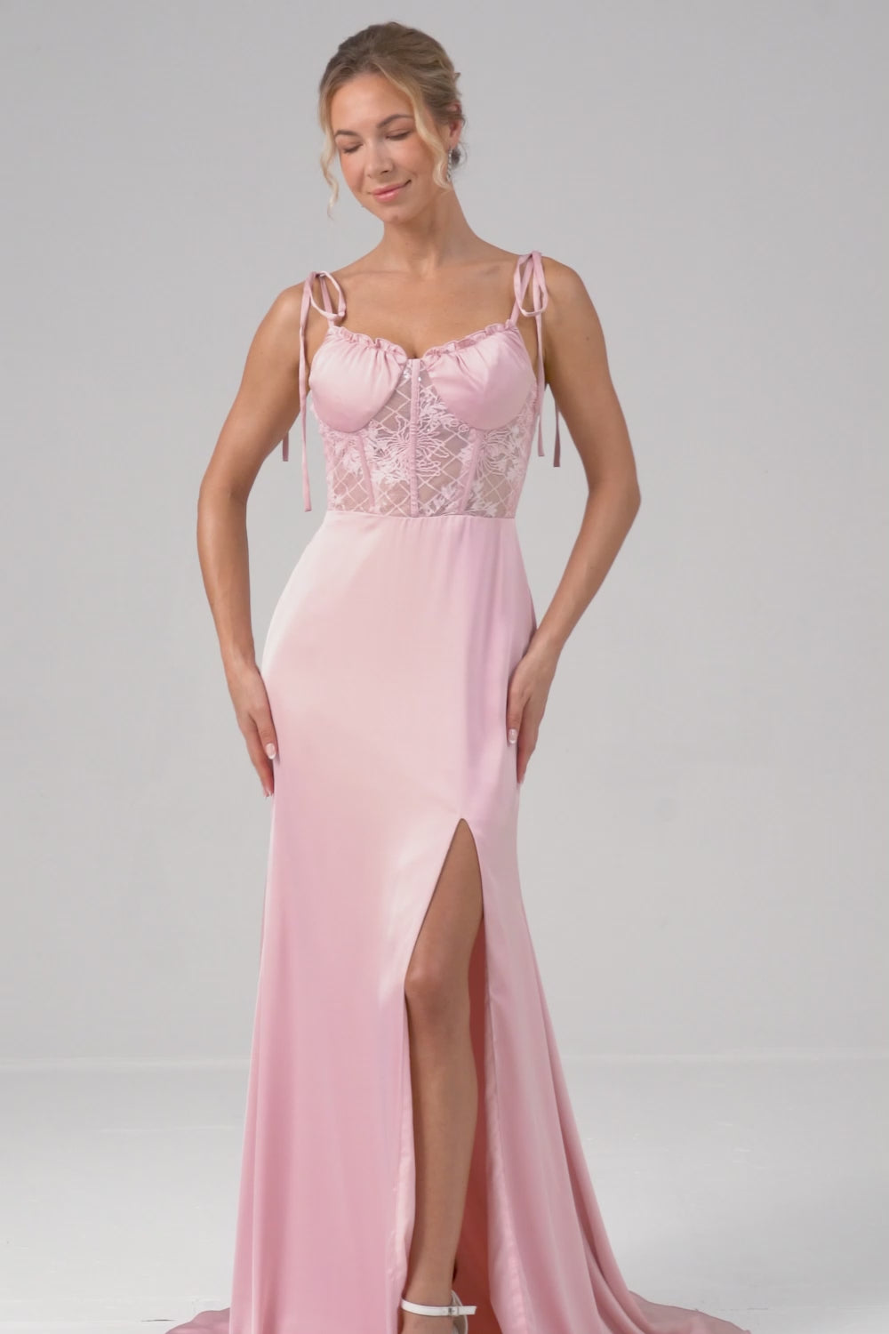 Grön Spaghetti Remmar A-linje Satin Lång Korsett Brudtärna Klänning med Slits