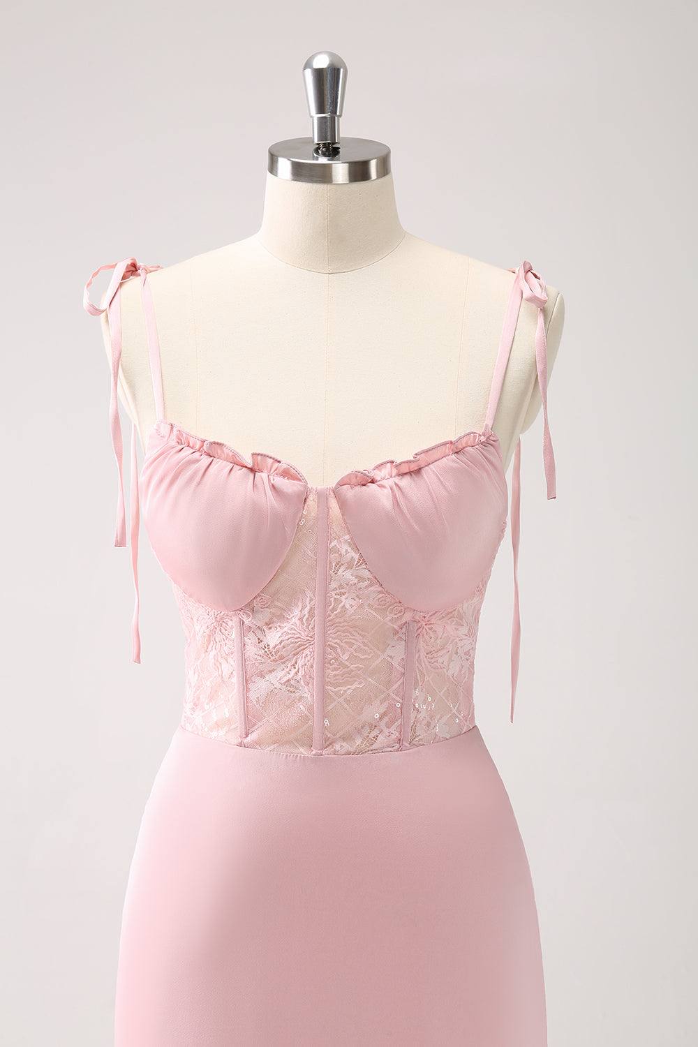 Dammigt Blå Fodral Spaghetti Remmar Rygglös Satin Lång Brudtärna Klänning