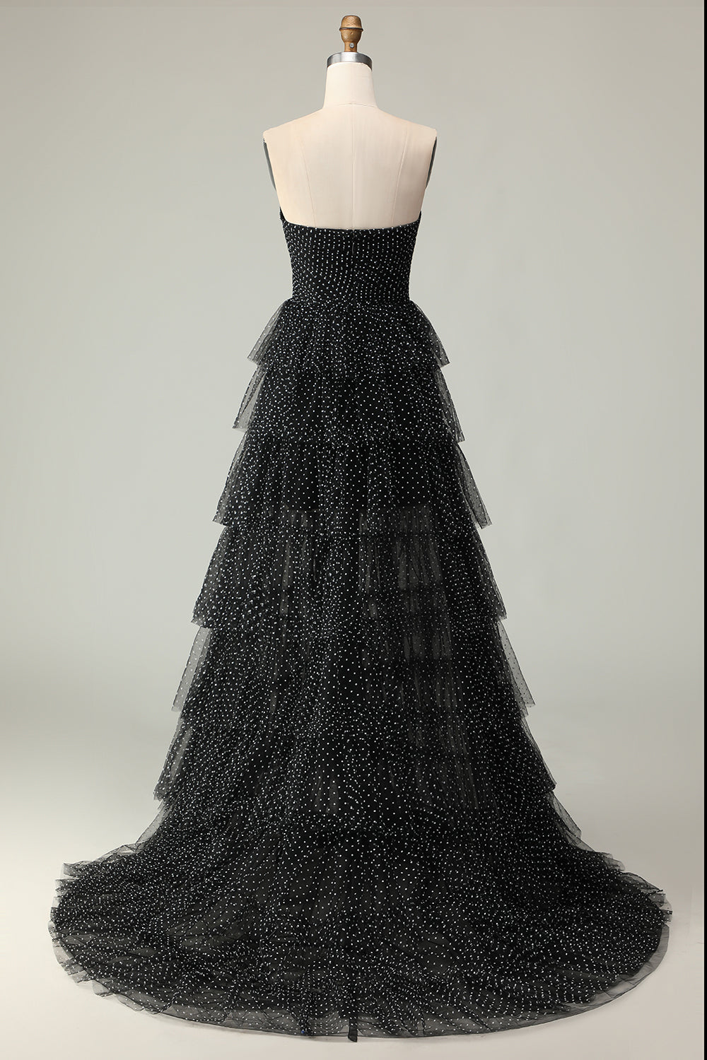 Ljusgrön Axelbandslös A Line Polka Dots Tiered Ruffle Bridesmaid Klänning med slits