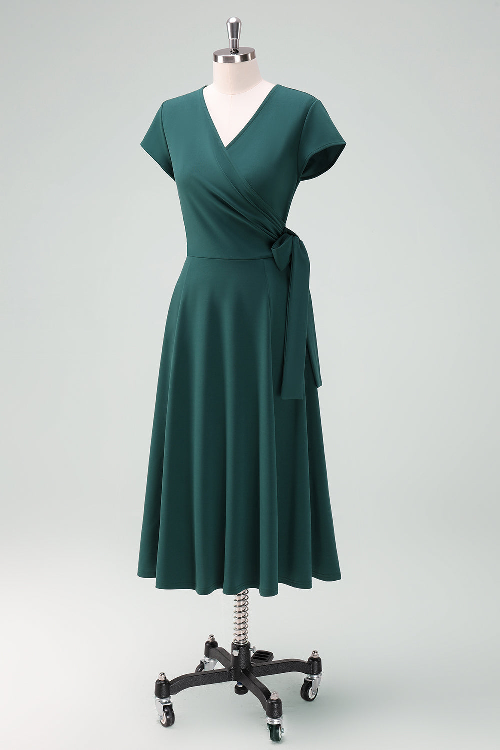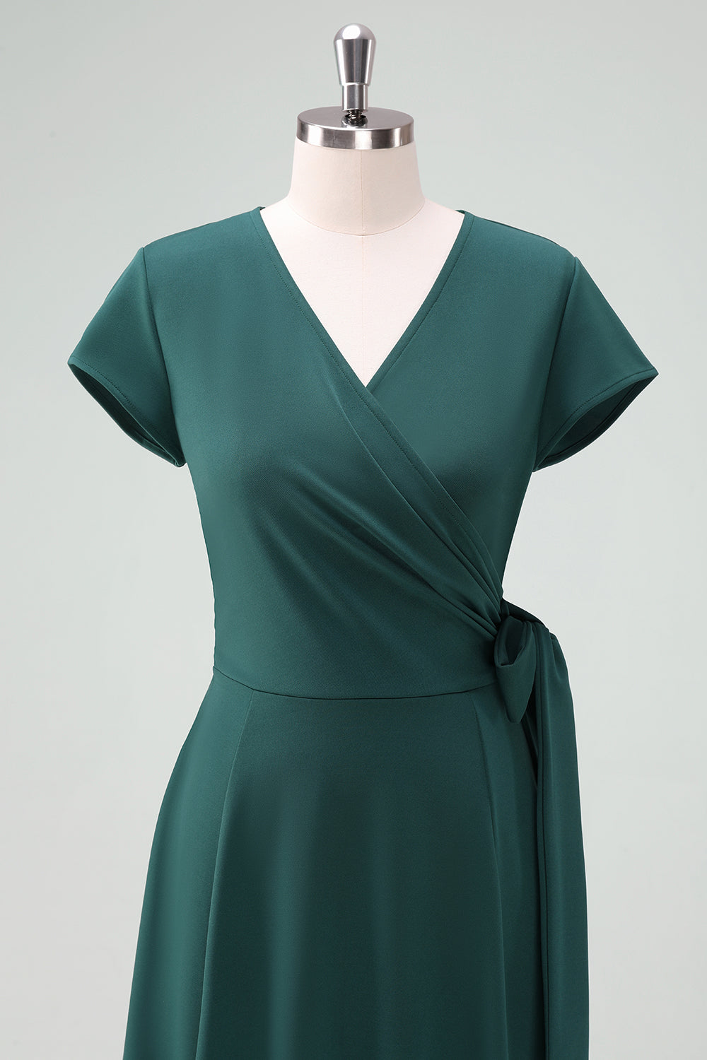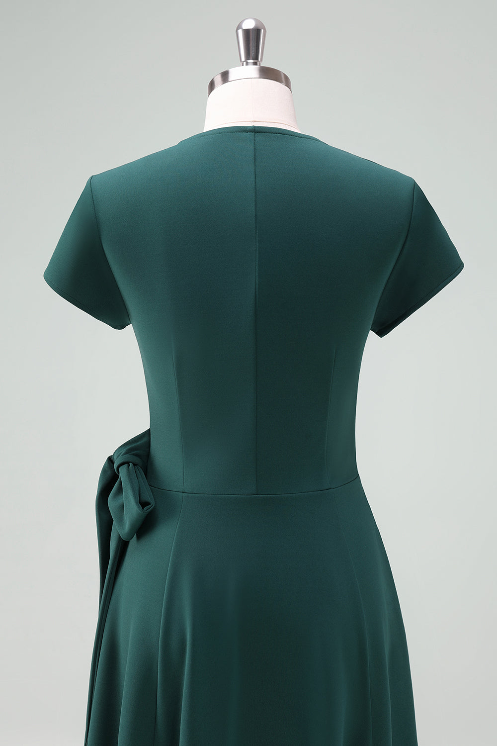 Mörkgrön A-linje klänning för brudens mor med korta ärmar
