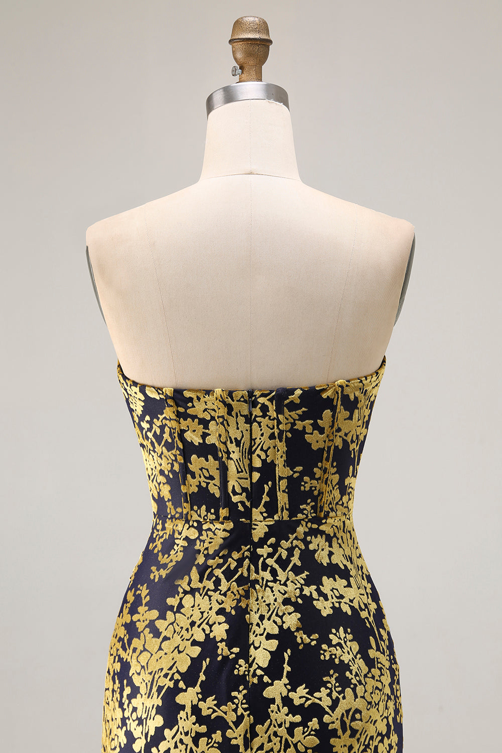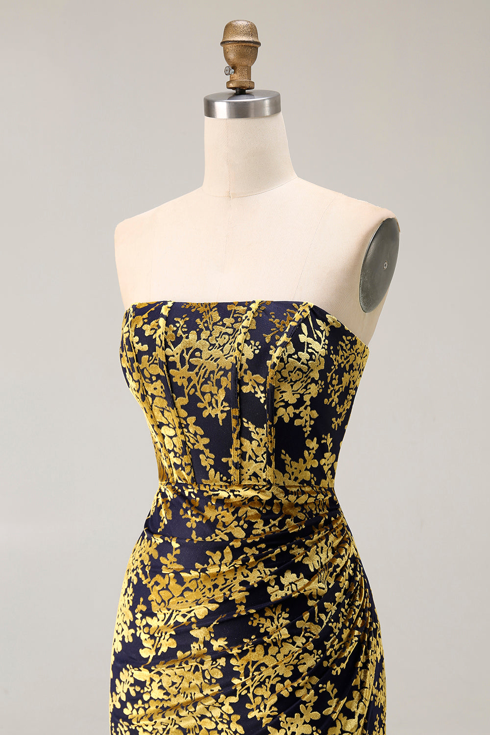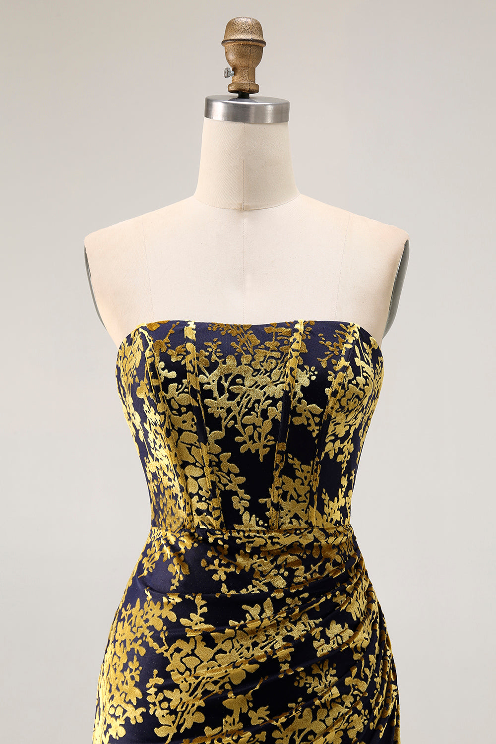 Vinröd Axelbandslös Korsett Burnout Sammet Brudtärna Klänning med slits