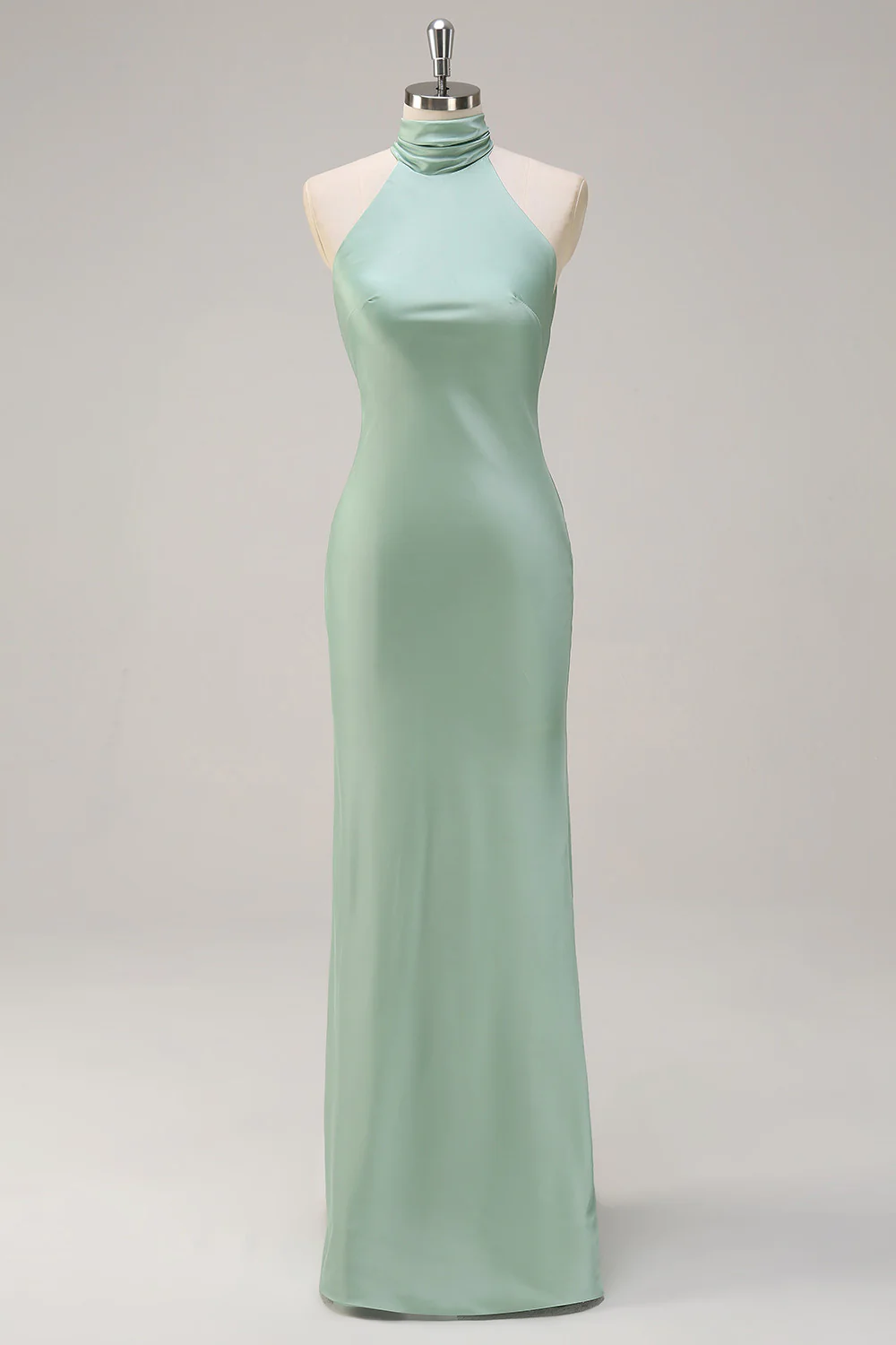Citrongrön Grimma Öppna Rygg Lång Brudtärna Klänning