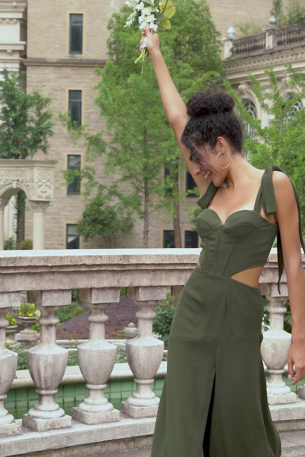 Oliv A Line Spaghetti Remmar Golvlång Brudtärna med Slits
