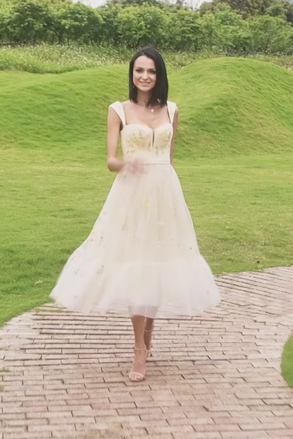 A-linje Sweetheart urringning Champagne Lång Balklänning med broderi