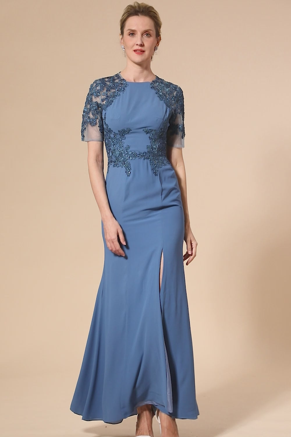 Blå sjöjungfru öppen rygg brudklänning med slits