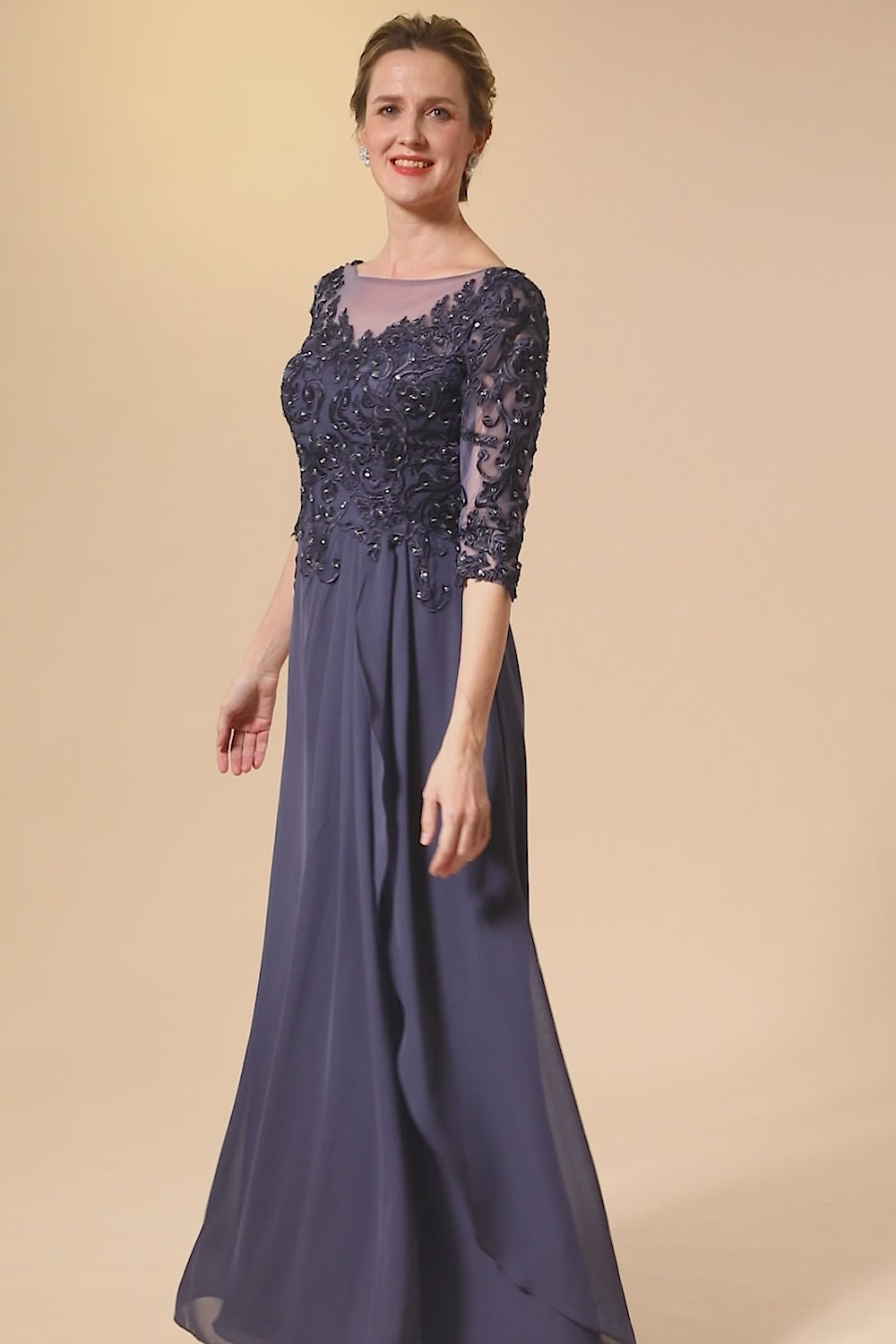 Gråblå glittrig pärlpärlad chiffong mamma till brudklänningen