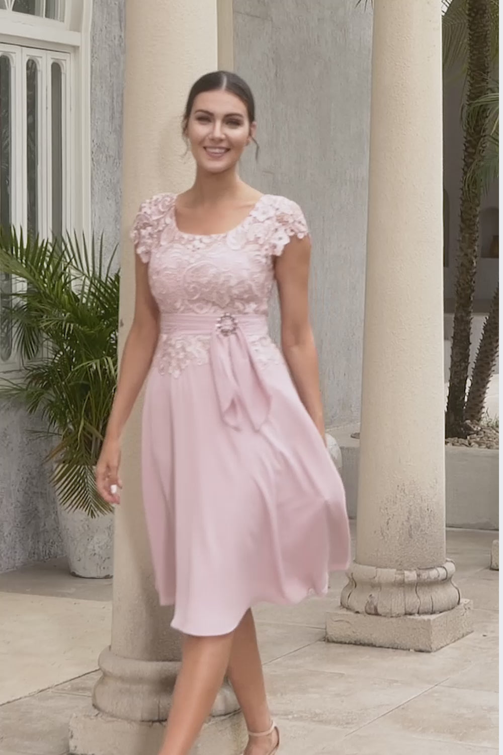Rosa chiffong mor till brudklänningen med spets