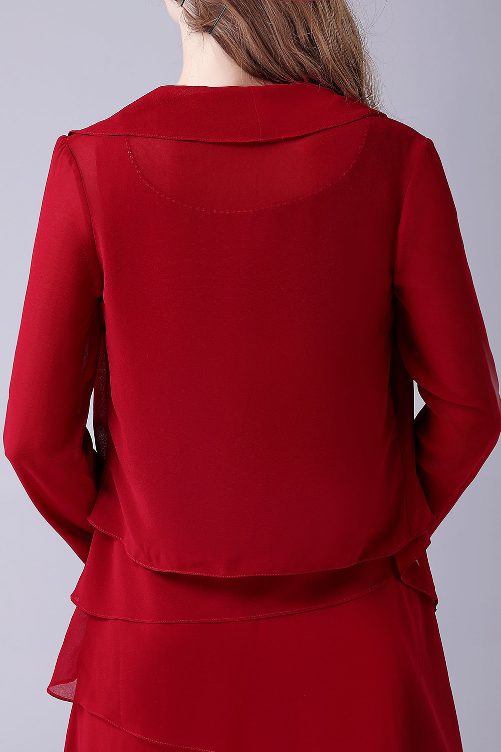 Vinröd A-linje Scoop Neck Chiffong Golvlång Klänning För Brudens Mor