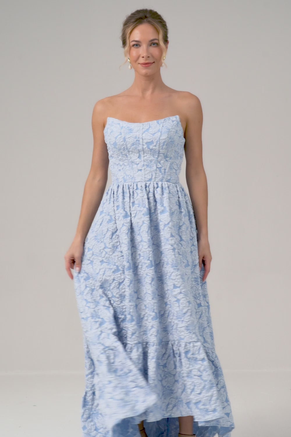 A-linje Blå Blommig Axelbandslös Hög Låg Brudtärna Klänning