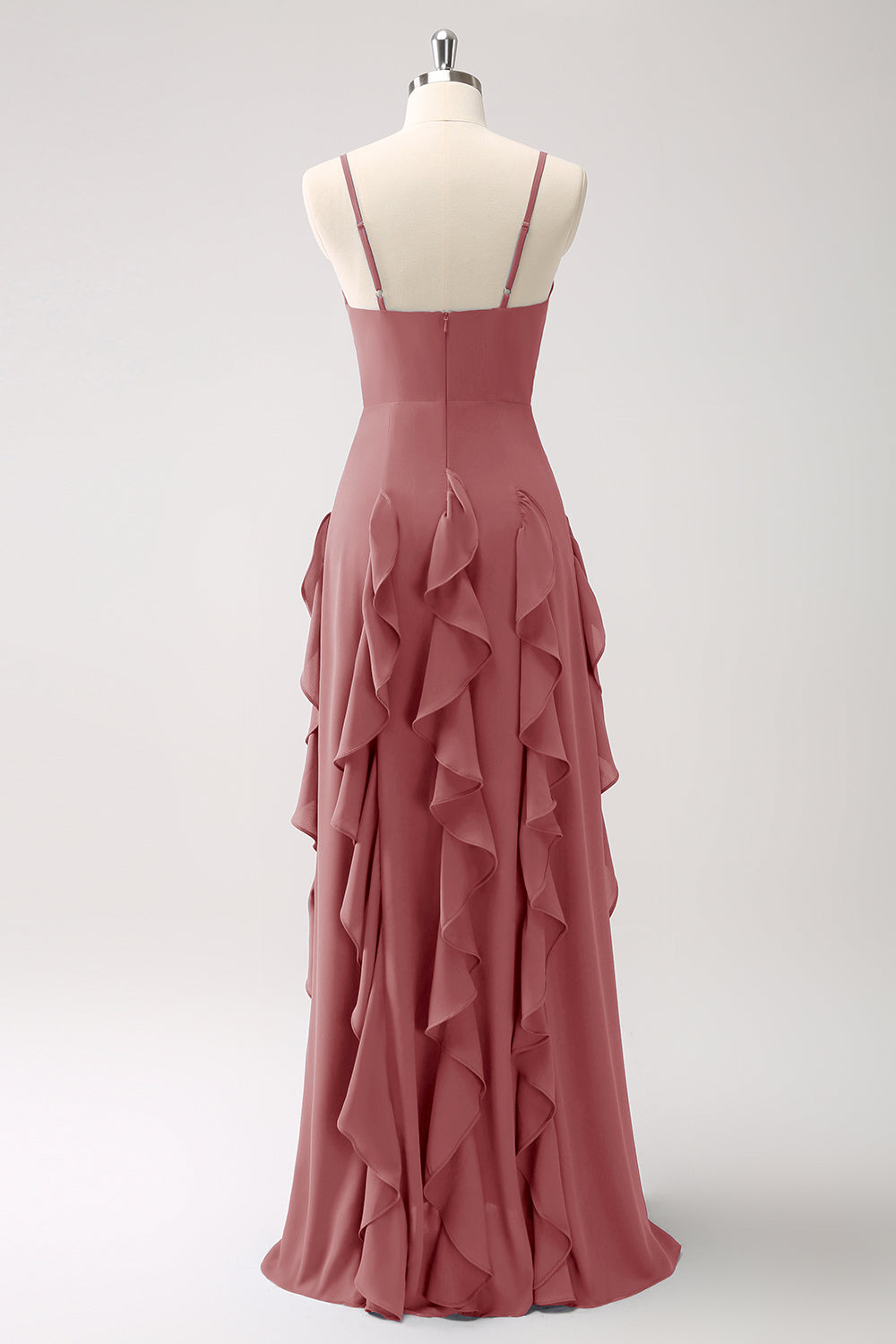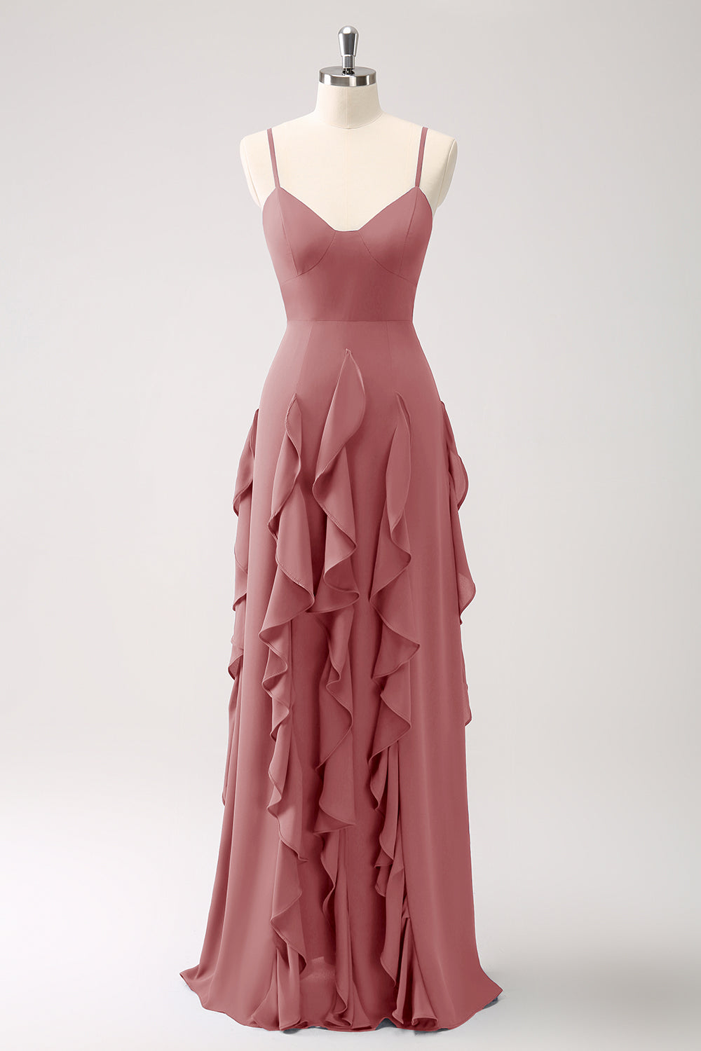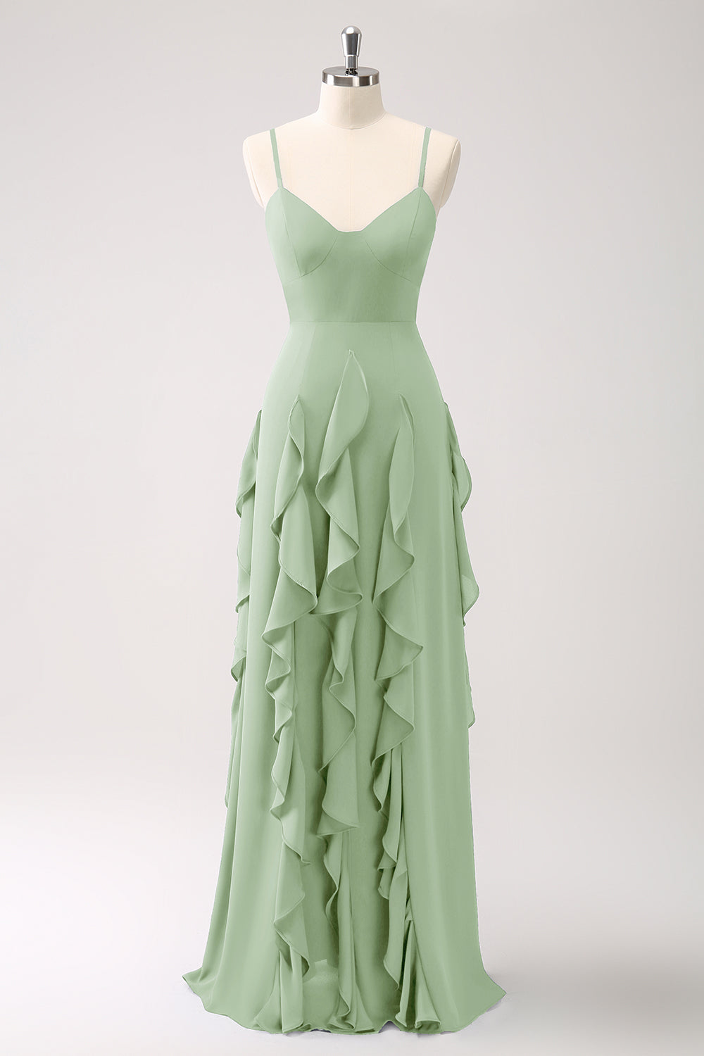 A-linje Dammig salvia Spaghetti Remmar Brudtärna Klänning med Volanger