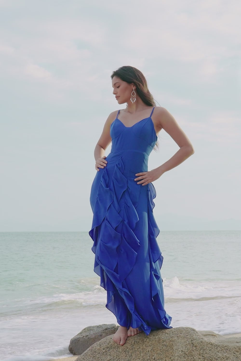 Fuchsia sjöjungfru klippa ut rynkad lång brudtärna klänning