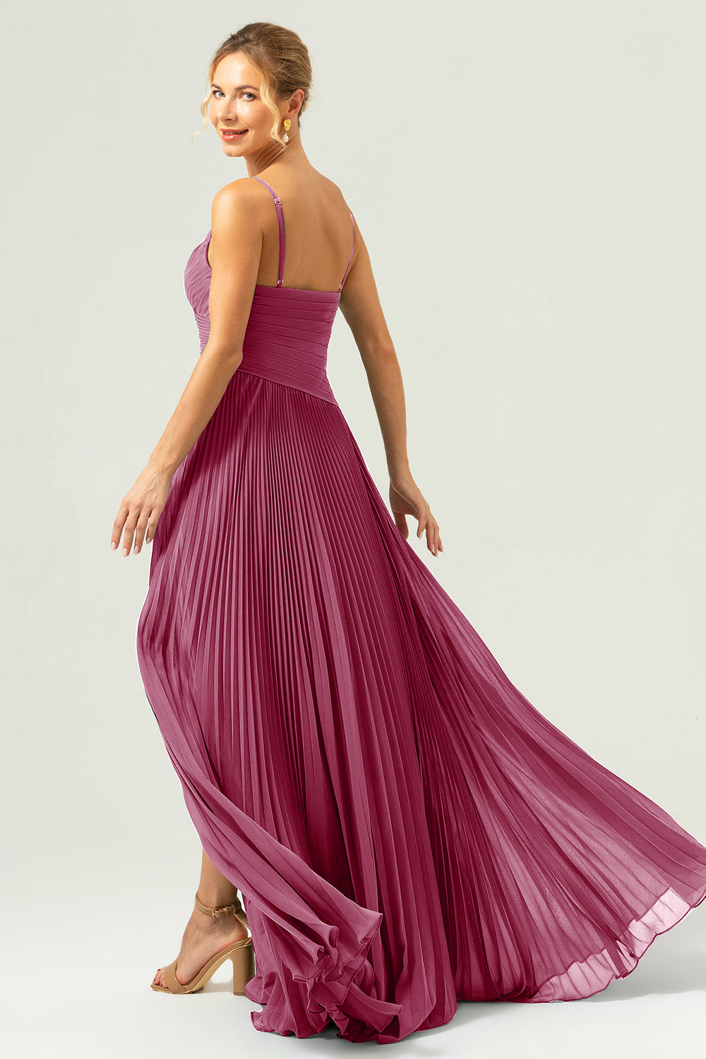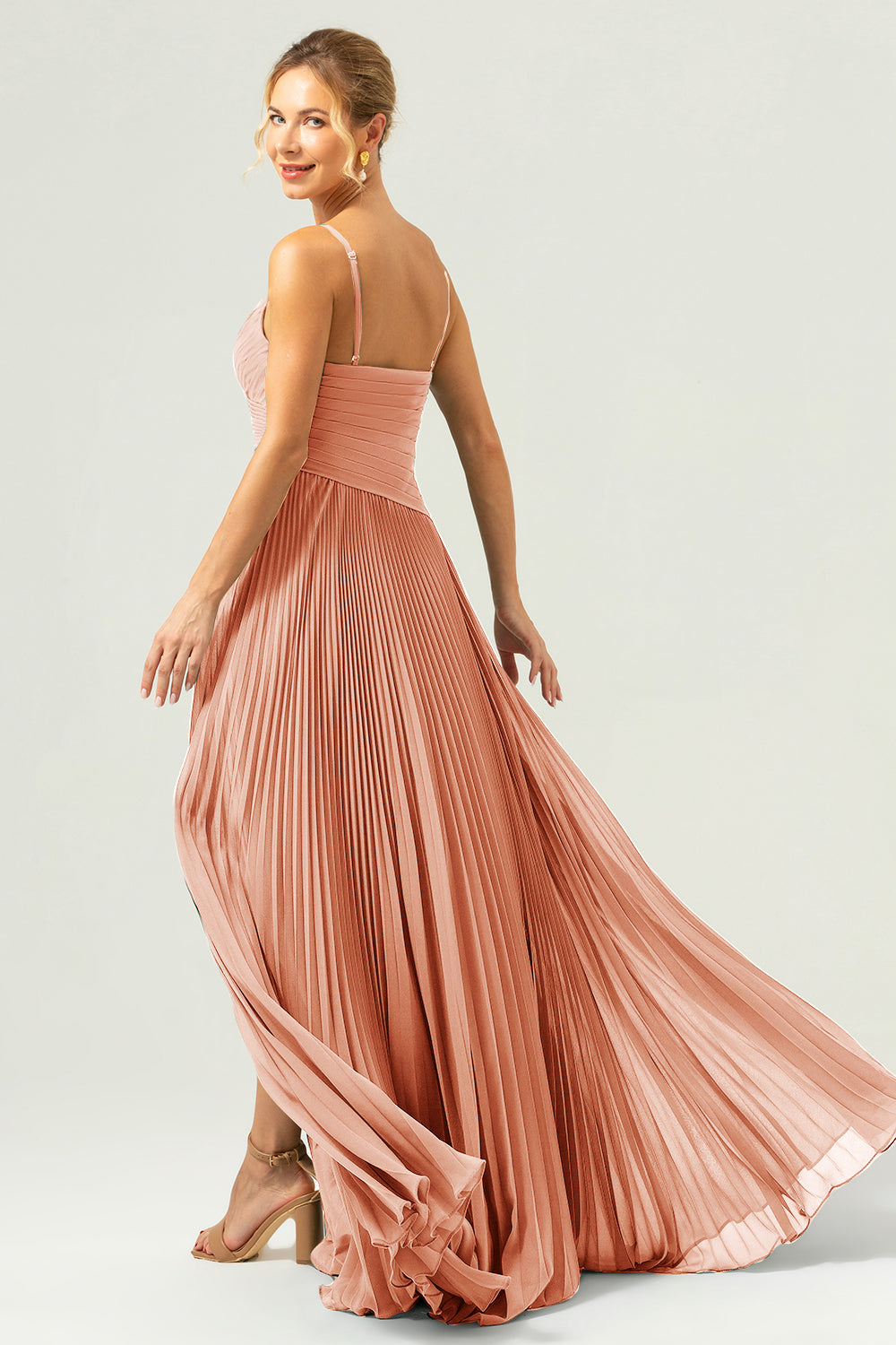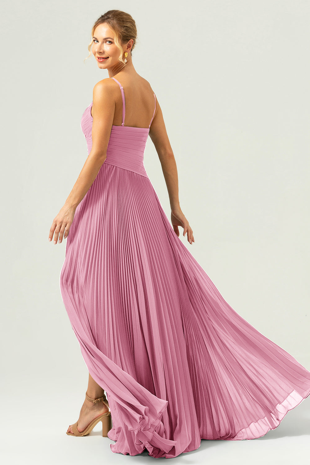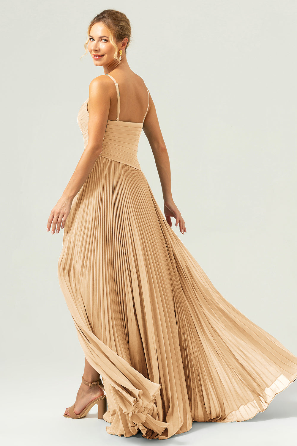 A-linje Spaghetti Remmar Plisserad Chiffong Eucalyptus Brudtärna Klänning med Slits