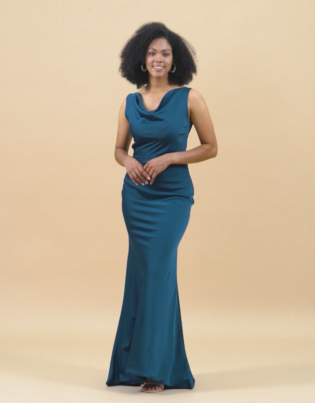 Bläck Blå Satin Mermaid Brudtärneklänning