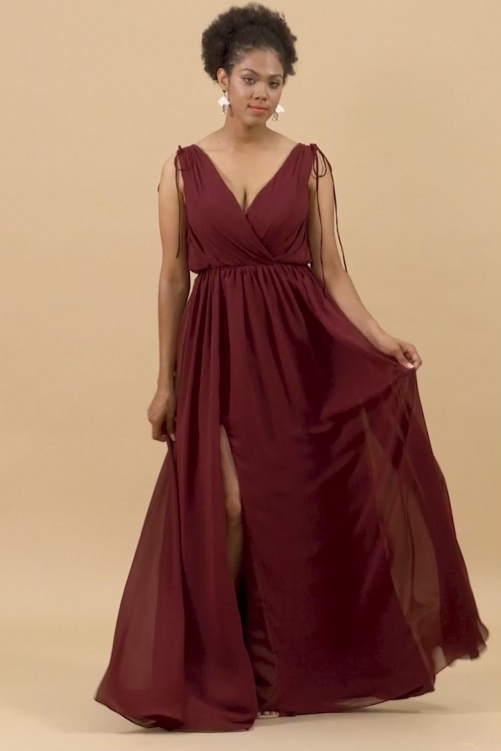 Bourgogne V-Neck Lace Up Bridesmaid Dress med slits