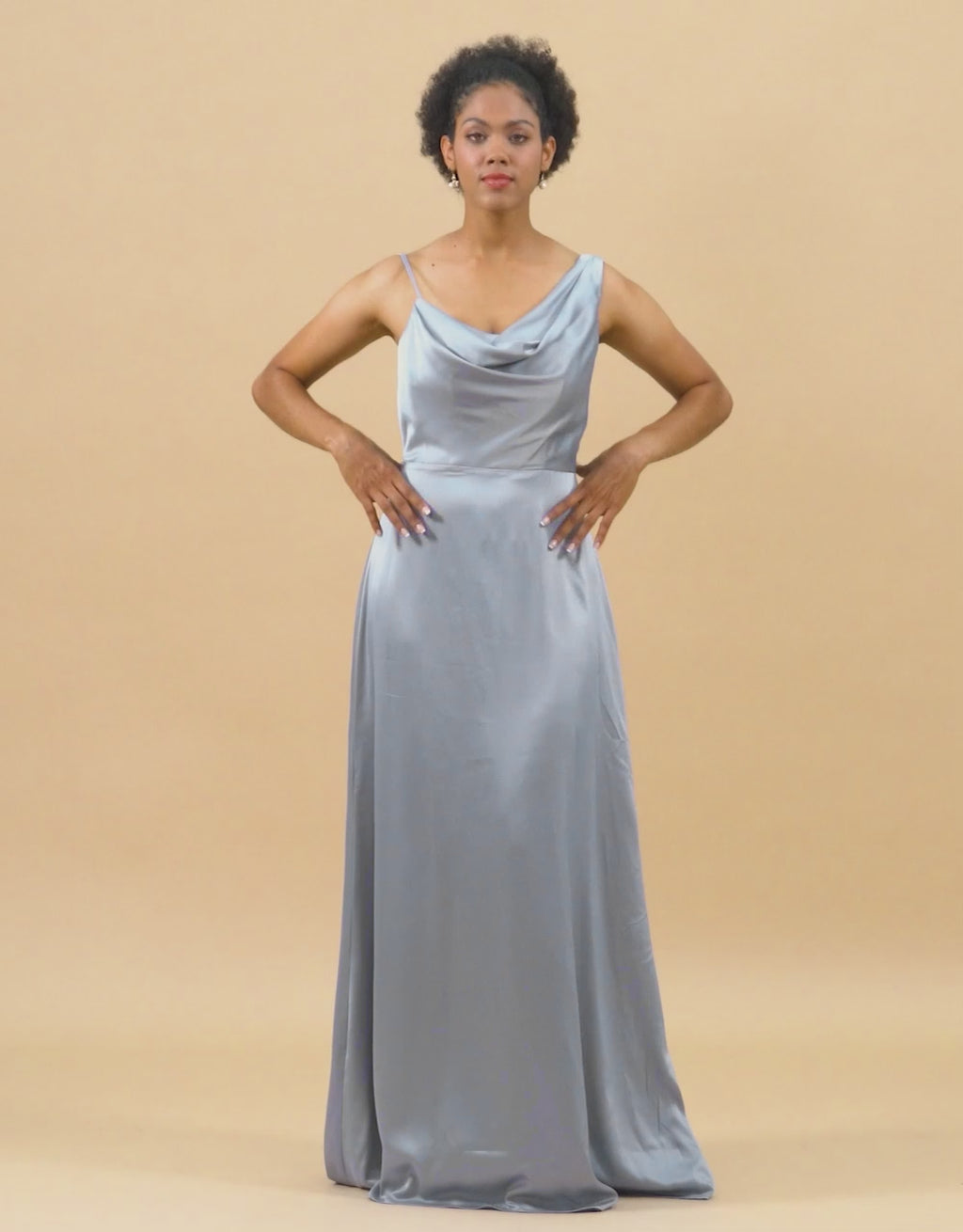 A-Linje Asymmetrisk Hals Grå Blå Satin Lång Brudtärneklänning